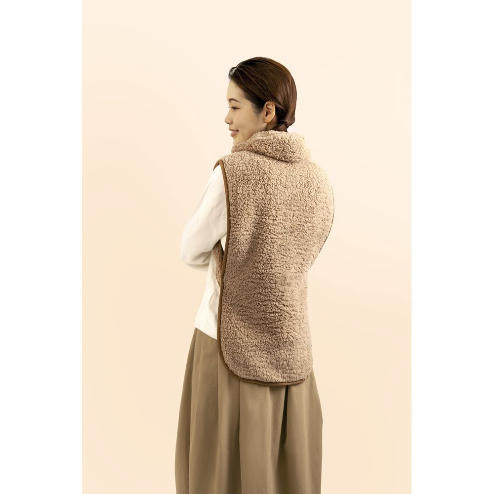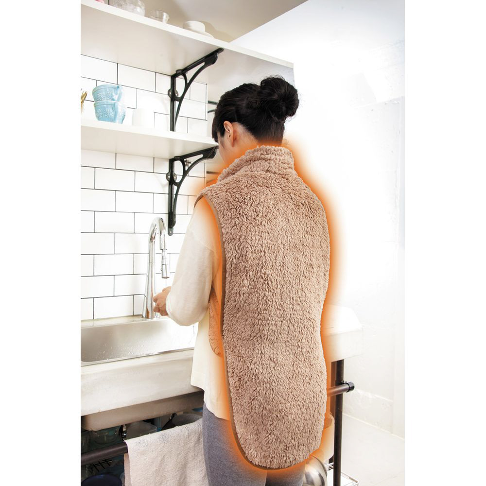 ■家事など作業がしやすいように前身頃のない形状で、寒さを防ぎつつ冷えやすい背面を温めます。