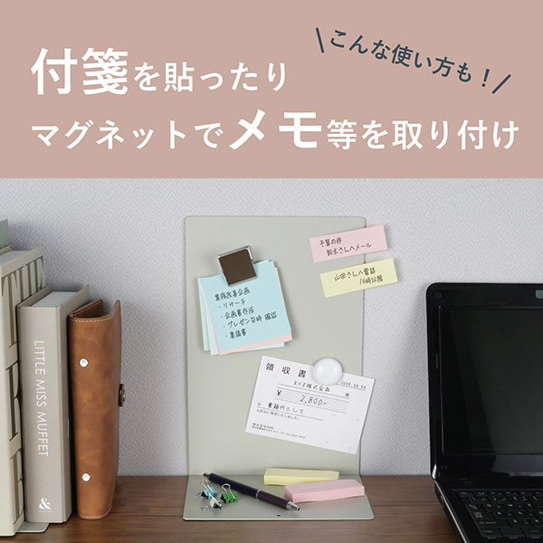 分厚いA4フィルもしっかりサポート。マグネットでメモ等を取り付けたり、転倒を防ぐ滑り止めゴム付き。
