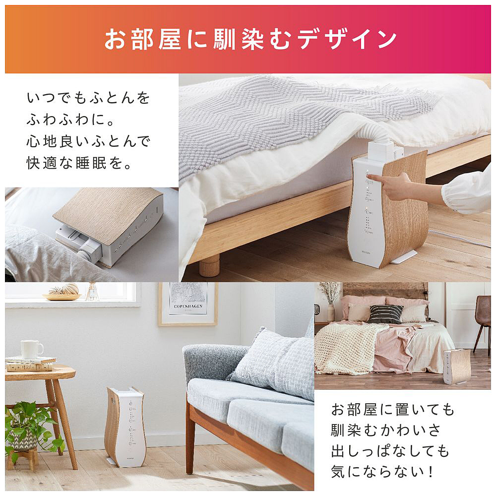 ■木目調で部屋になじみやすく、インテリア感覚で使用できるデザインのふとん乾燥機です。