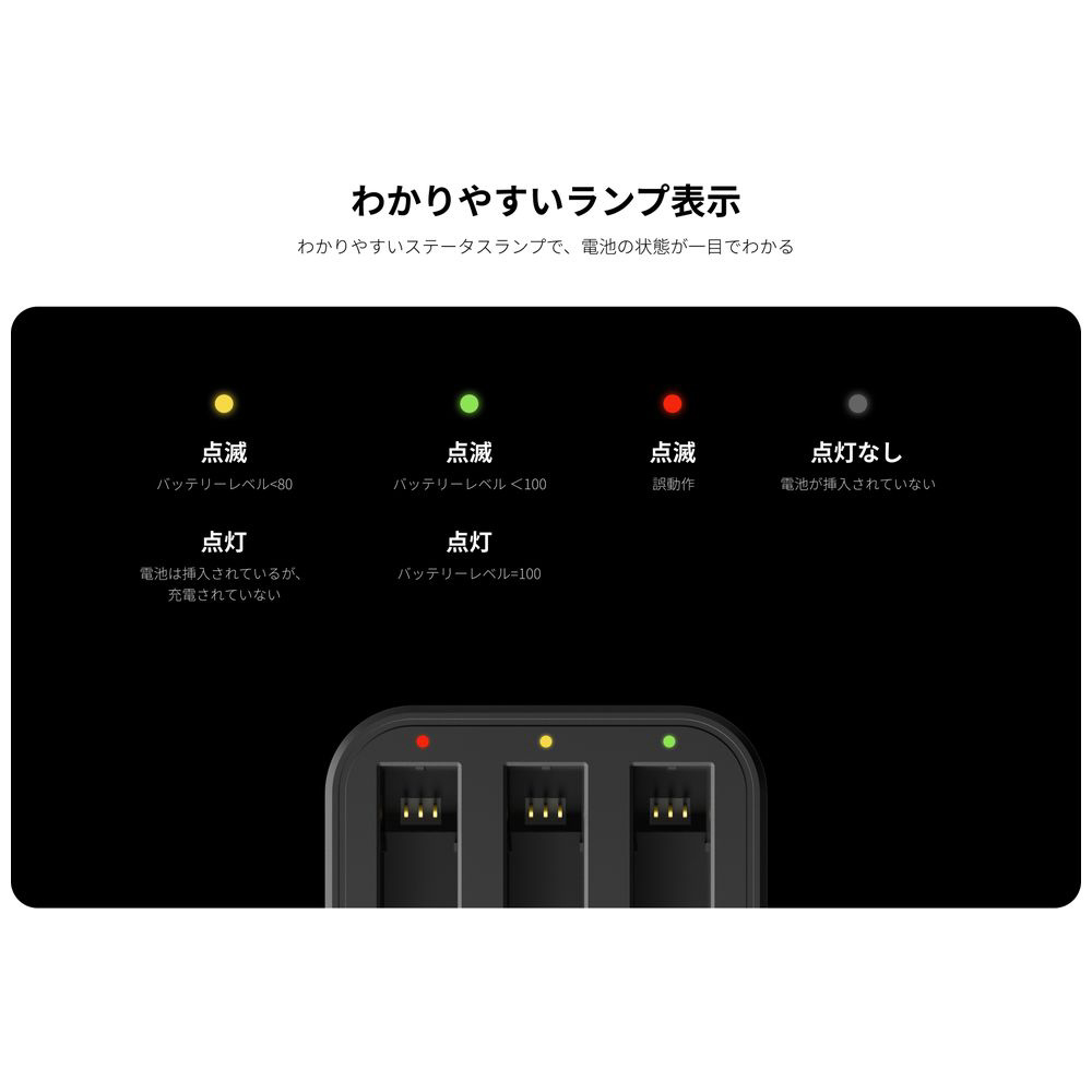 最大3つのバッテリーを同時に簡単急速充電可能。