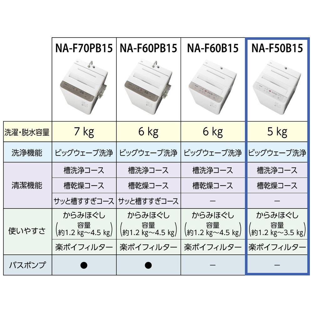 全自動洗濯機 Fシリーズ ニュアンスグレー NA-F50B15-H [洗濯5.0kg /乾燥機能無 /上開き]【生産完了品】