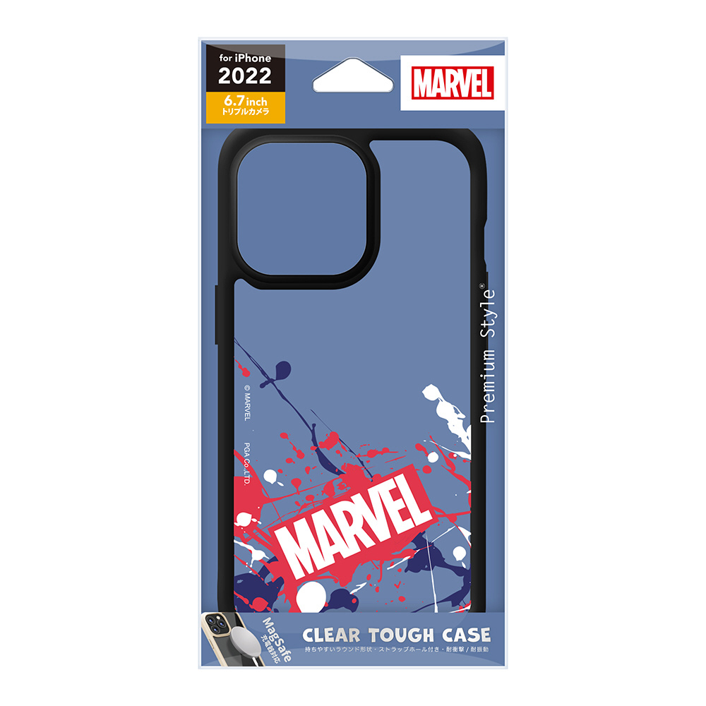 「MARVEL」デザインのiPhone本体の美しさを活かせる耐衝撃設計のiPhone 14 Pro Max トリプルカメラ用 MagSafe充電器対応 クリアタフケース