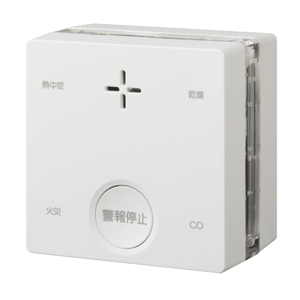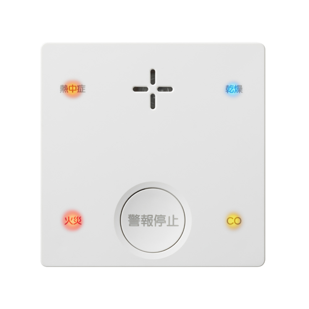 デザインと機能にこだわった火災警報器。警報器メーカーだからこそできる、煙センサ+一酸化炭素センサを搭載。さらに熱中症/乾燥おしらせ機能付き。