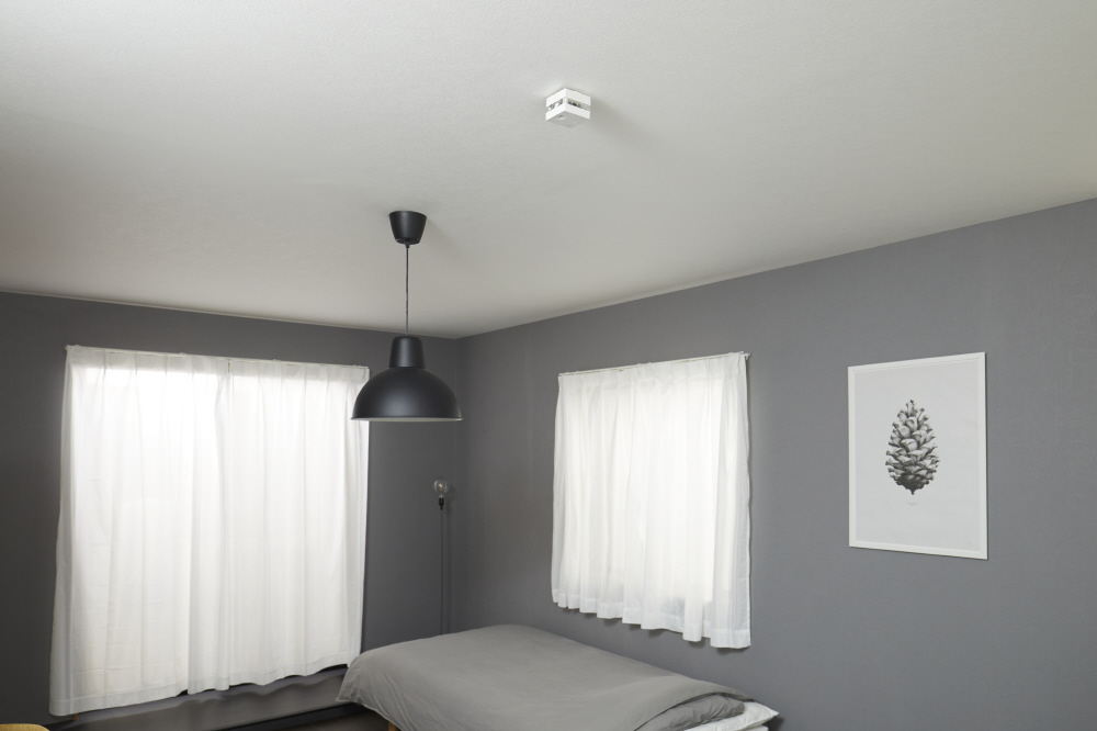 現代の住宅にフィットする、火災警報器としては斬新なキューブ型。天井/壁のどちらにも取付可能。