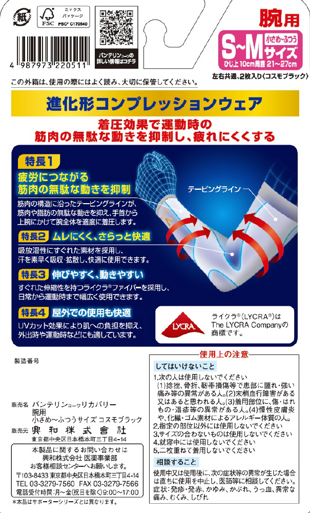 | 商品名 | バンテリンリカバリー 腕用 S-M 小さめ~ふつうブラック |