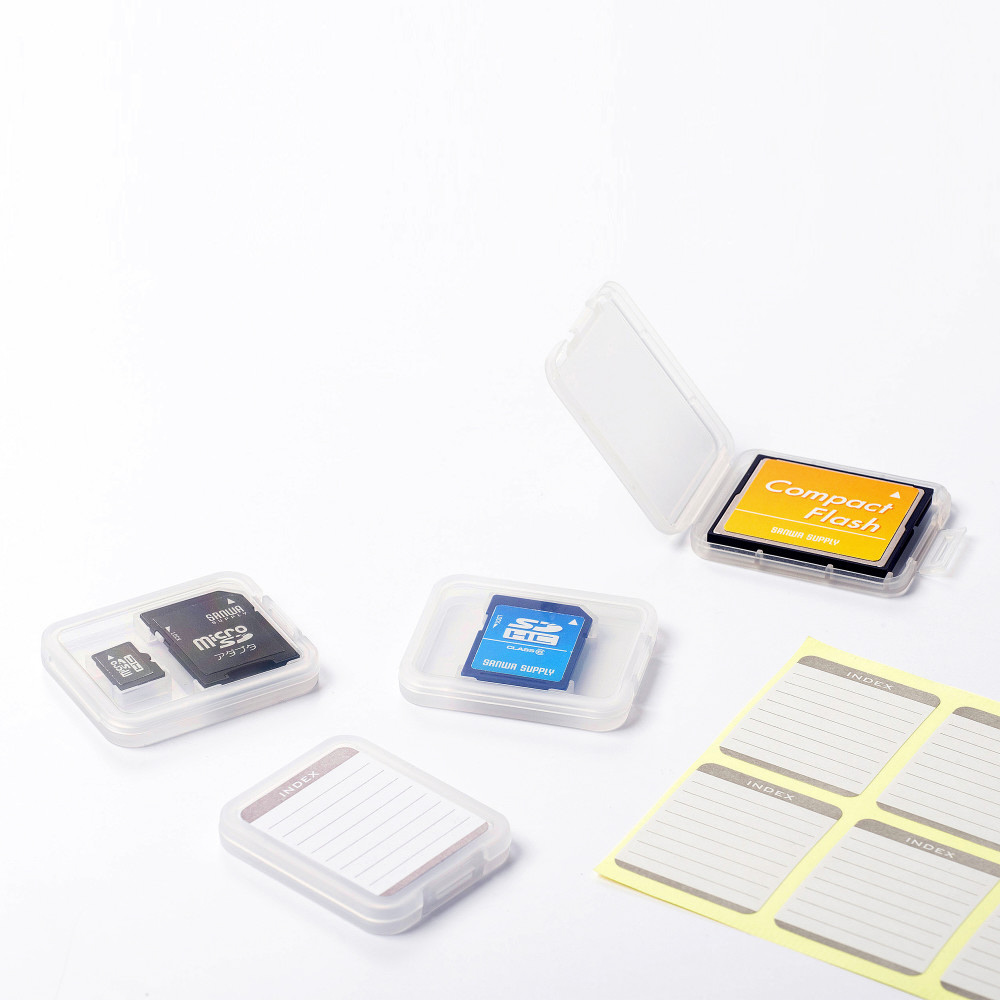 INDEXシール付きでタイトルや内容がメモ書きできるmicroSDカード用クリアケース。6個セット。