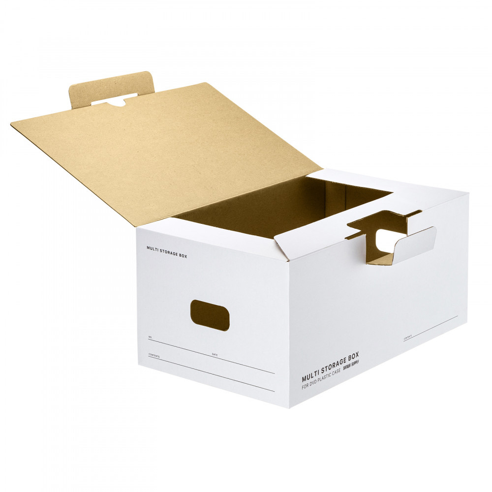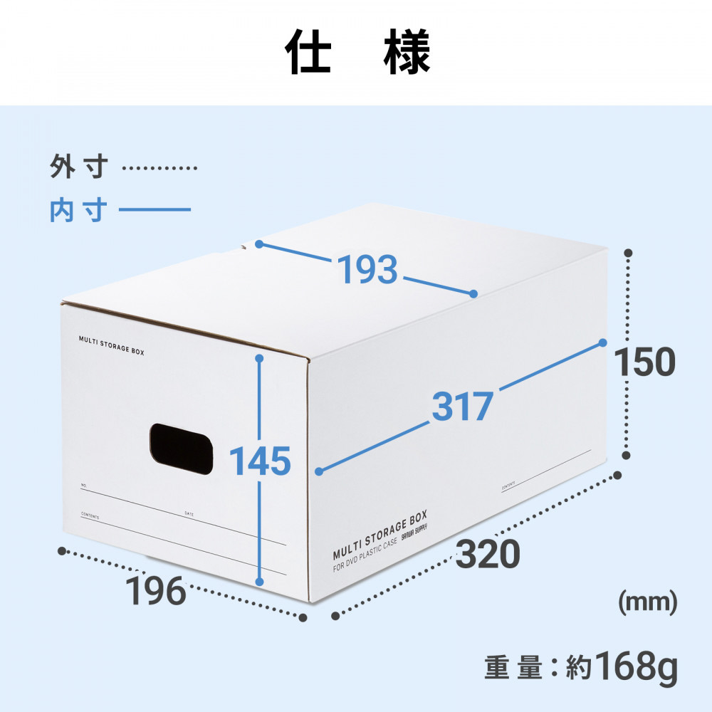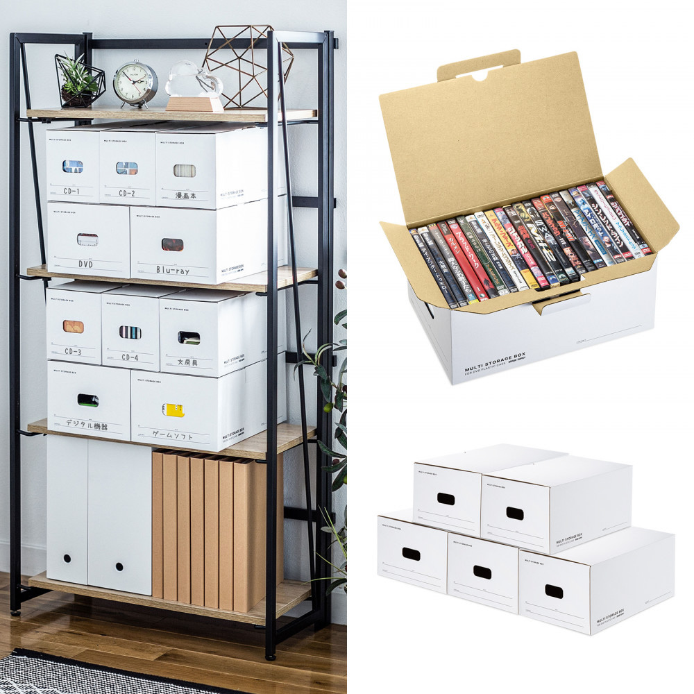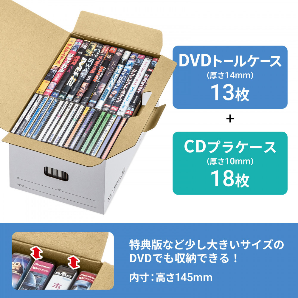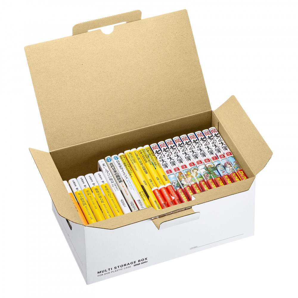 ■DVDトールケース(14mm)を最大21個まで収納できる段ボール製の組み立て式ボックス収納ケースです。