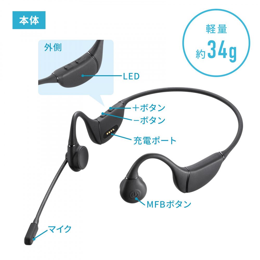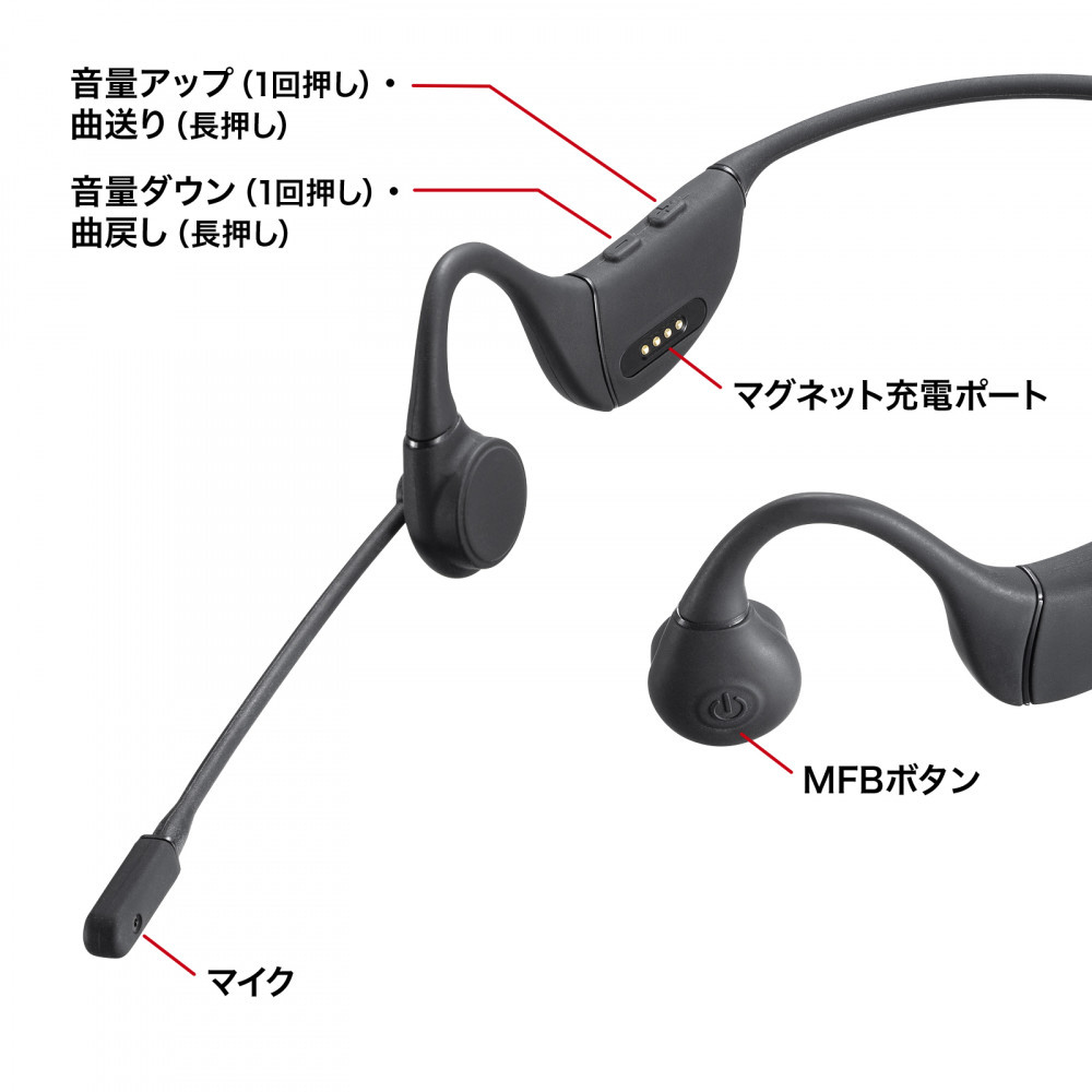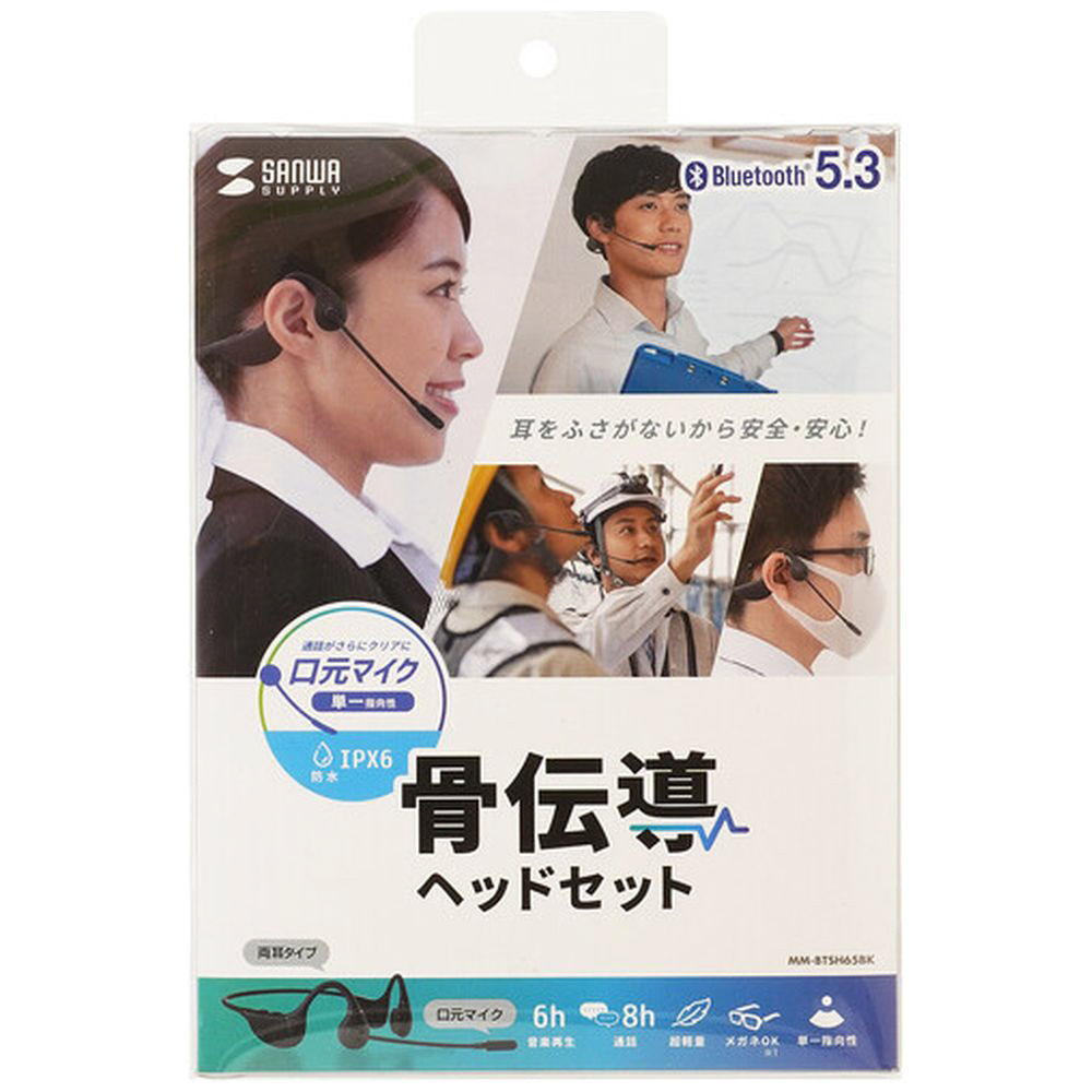 ヘッドセット 骨伝導 ブラック MM-BTSH65BK [ワイヤレス(Bluetooth) /両耳 /イヤフックタイプ]