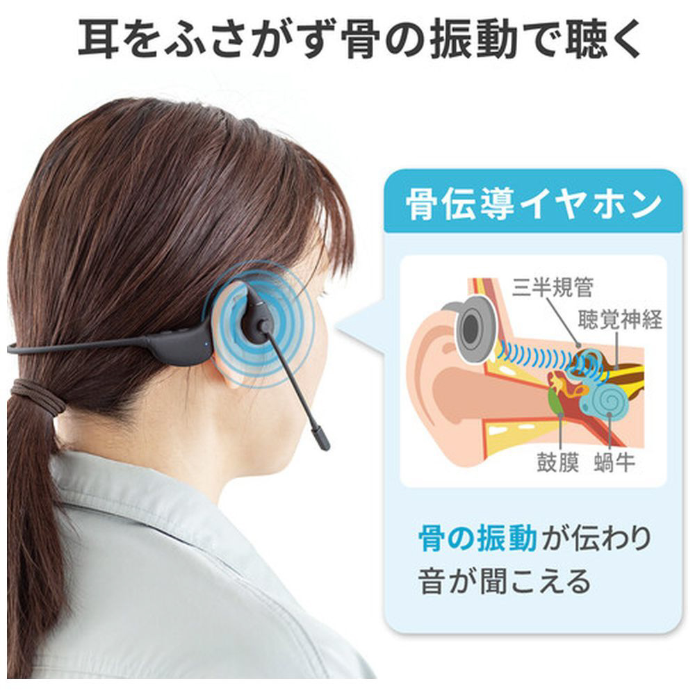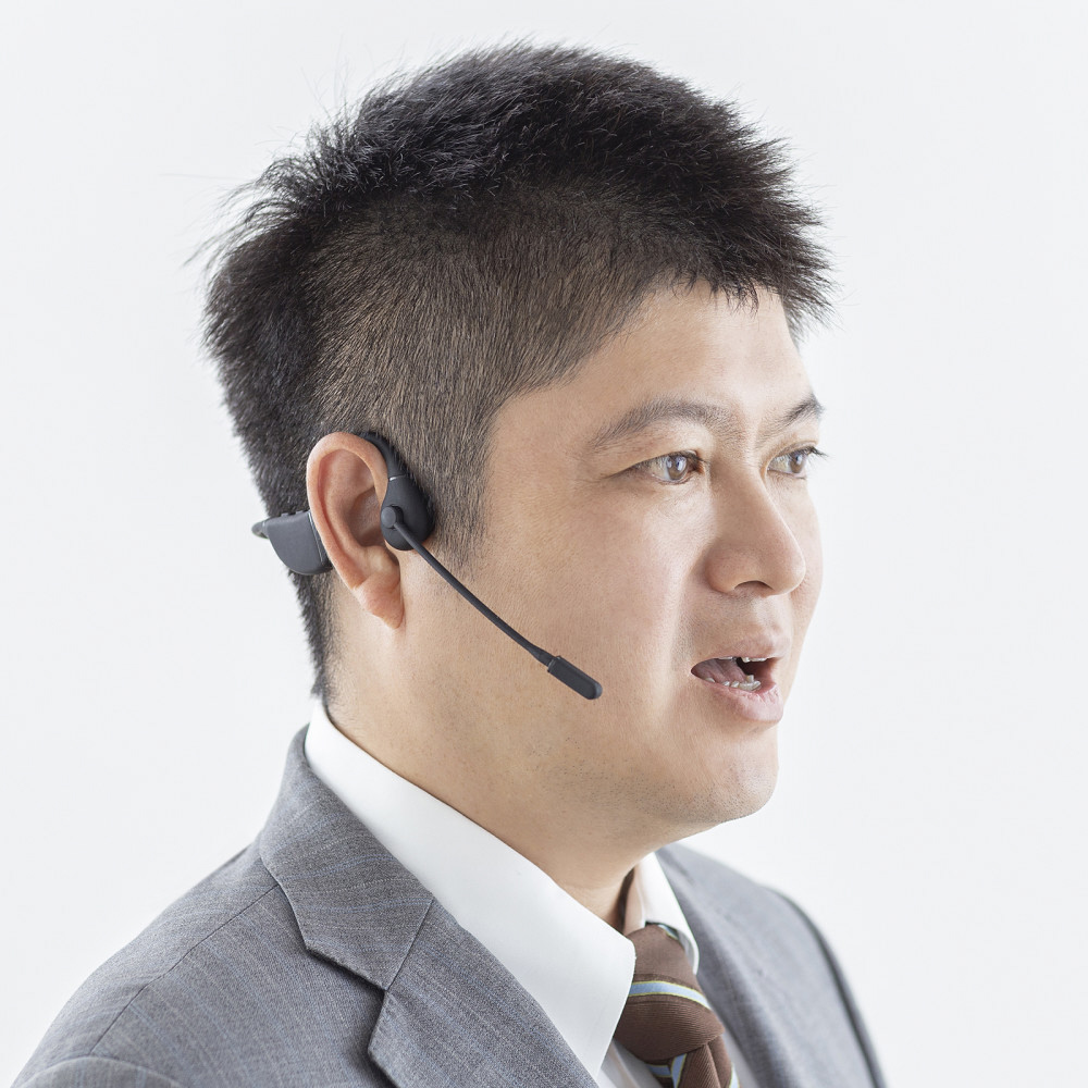 耳をふさがず周りの音をききながら使える骨伝導ヘッドセット。