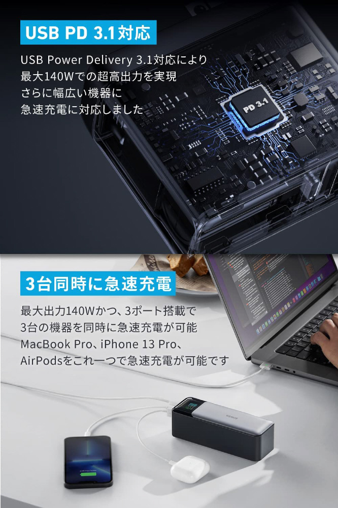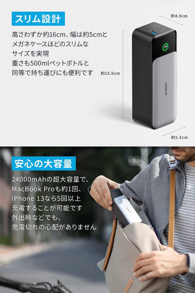 モバイルバッテリー 737 Power Bank(PowerCore 24000) 24000mAh 付属ケーブル長: 0.6m ブラック A1289N11 [USB Power Delivery対応 /3ポート] 【864】