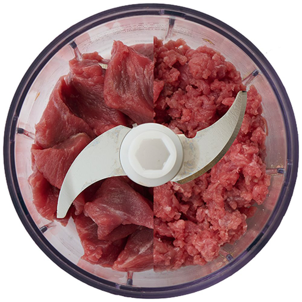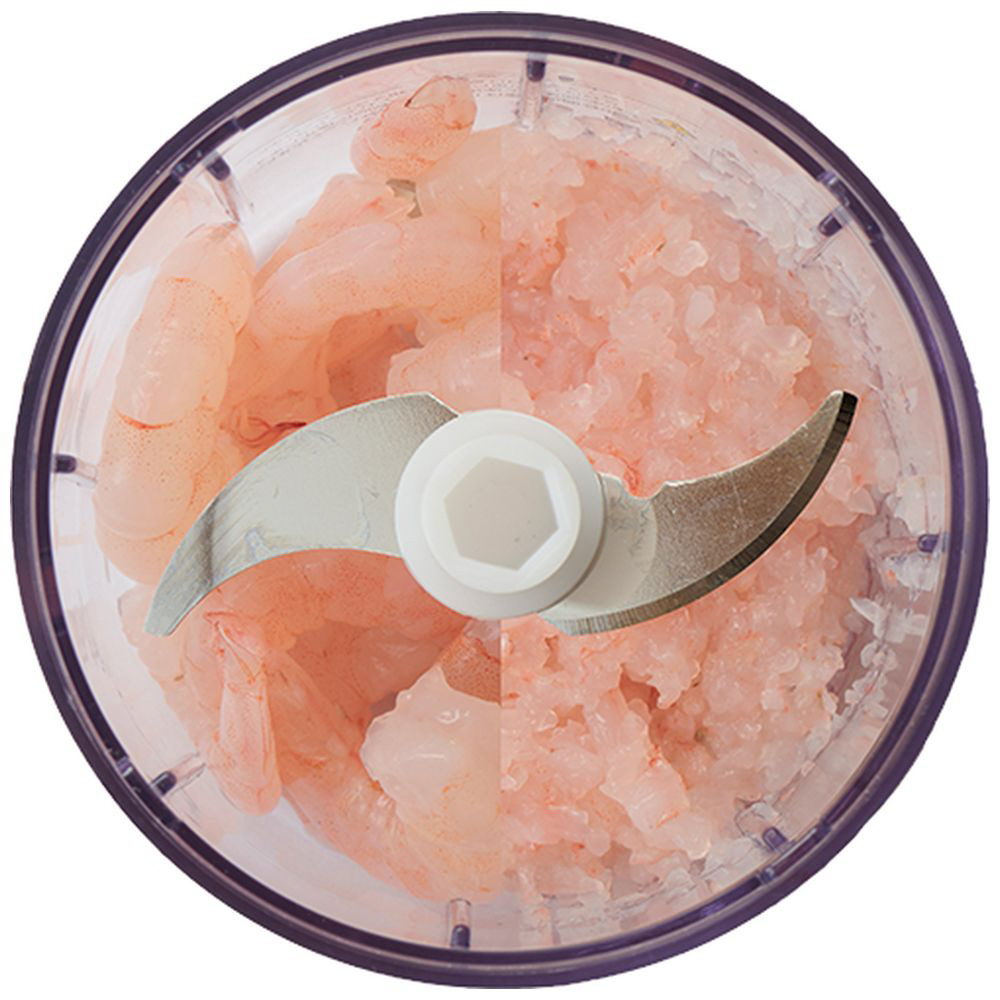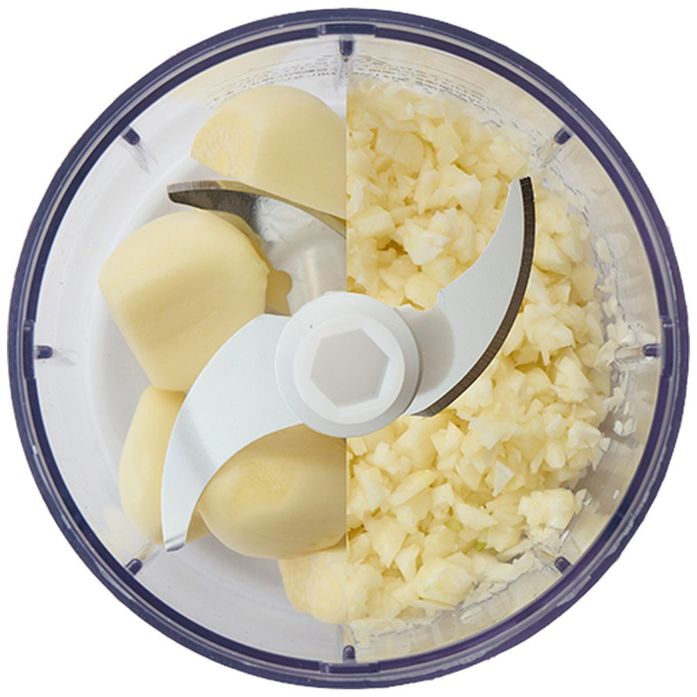 直径9cmのコンパクトサイズで場所を取りません。4枚刃と強力回転で、野菜も細かくみじん切り可能。