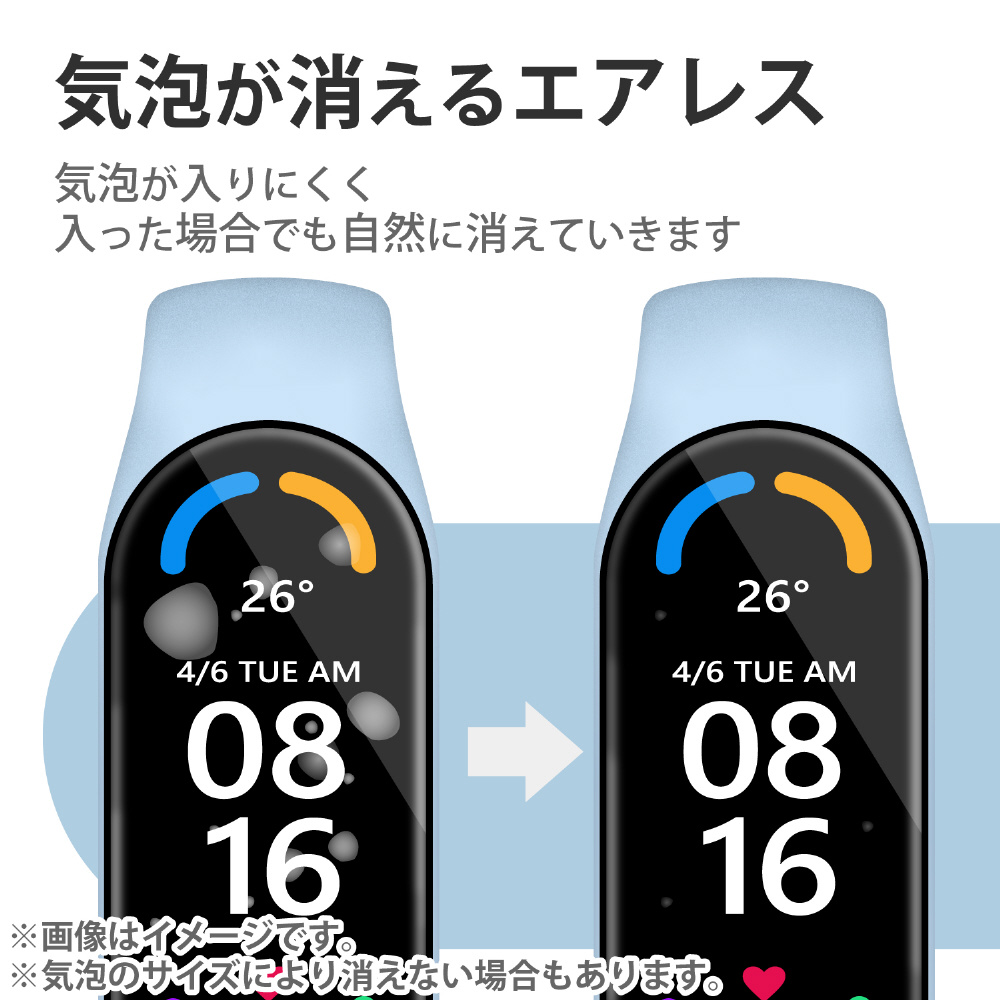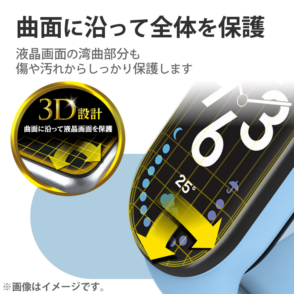 画面の曲面に沿った3D設計で、端末のデザインを損なわずに衝撃から守るXiaomi Smart Band 7用フルカバーフィルムです。