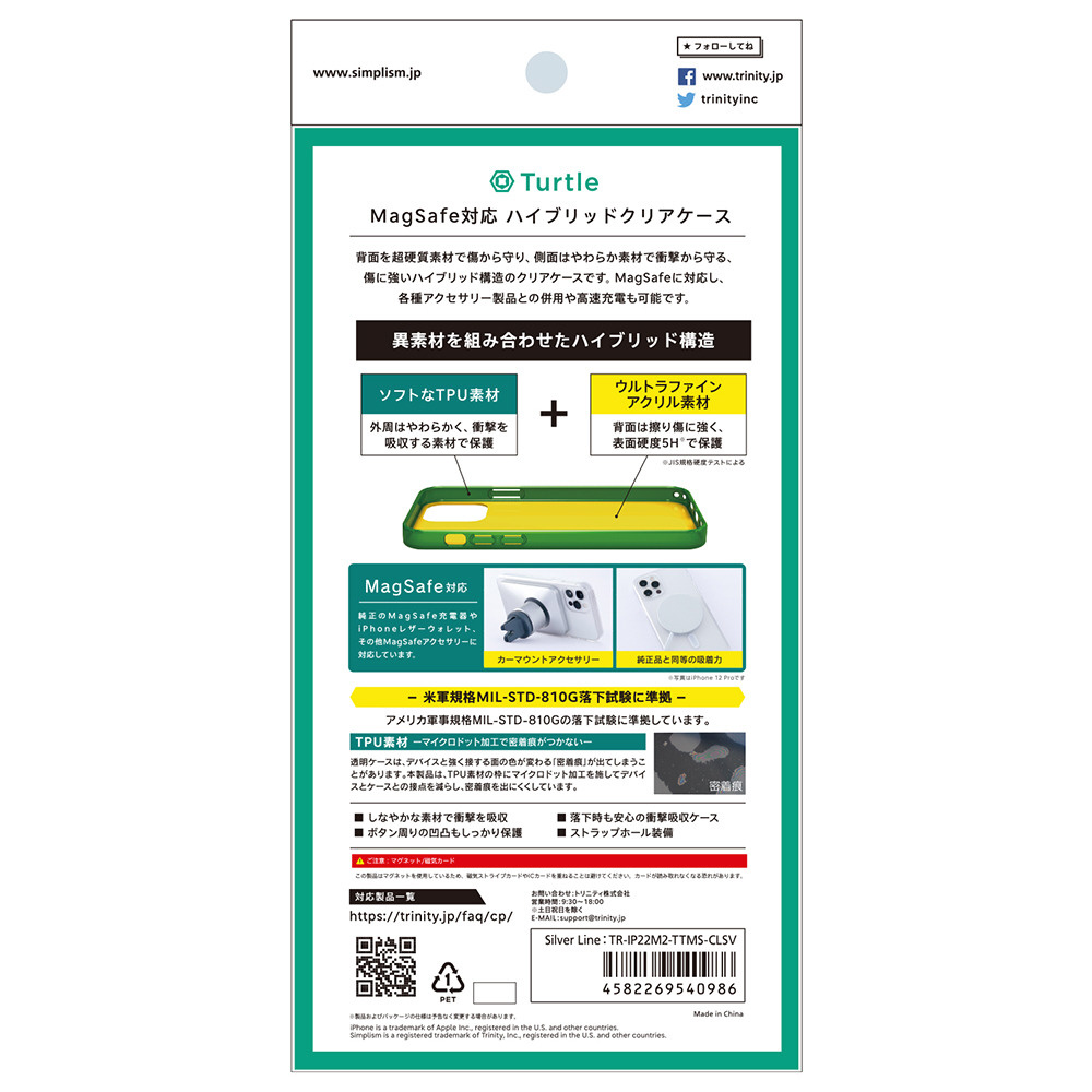 | 商品名 | iPhone 14 / 13 [Turtle] MagSafe対応 ハイブリッドクリアケース TR-IP22M2-TTMS-CLSV |