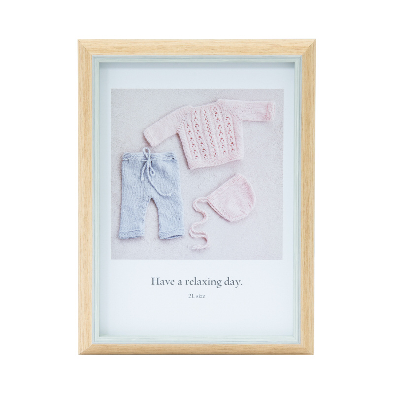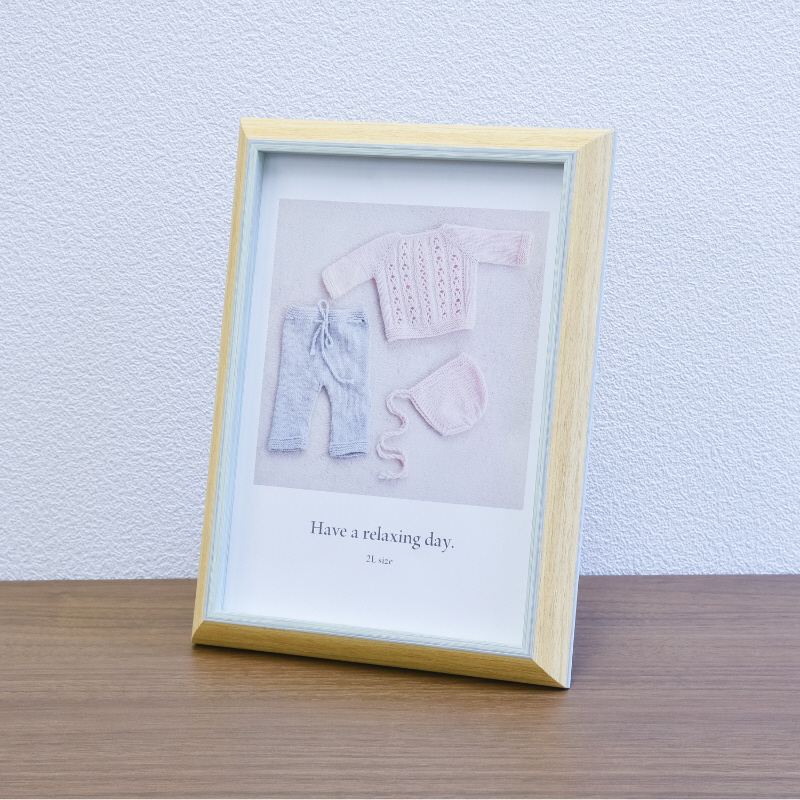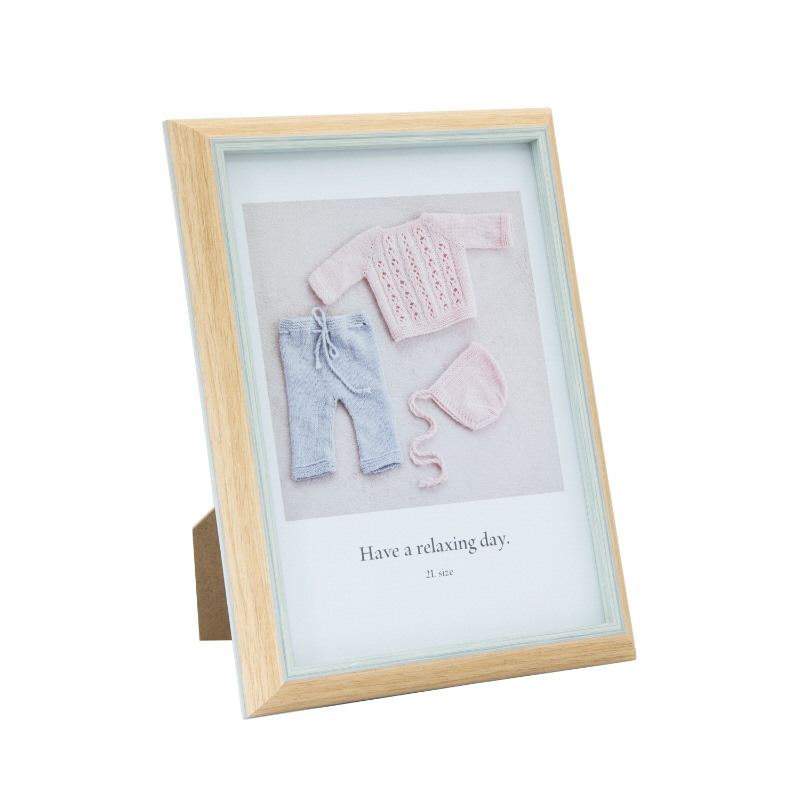 ツートンカラーのフォトフレームです。優しい色の組み合わせが、インテリアに馴染みます。