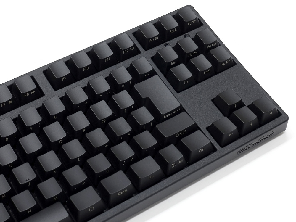 スタンダードモデルの黒いアッパーケースにはマットブラックコーティングを採用しました。キーボードの落ち着きのある佇まいが机上をよりシックに演出します。