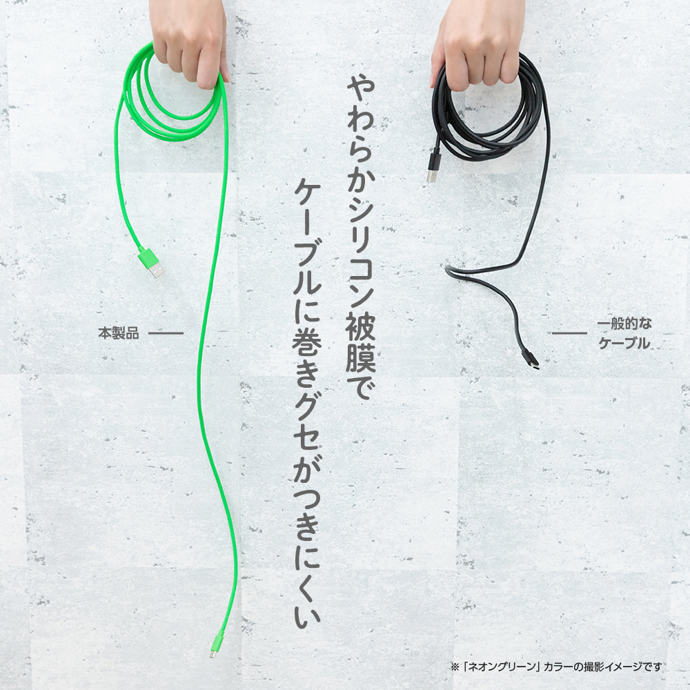 触れるとサラサラで気持ち良い!やわらかくて絡みにくいシリコン素材のケーブル!