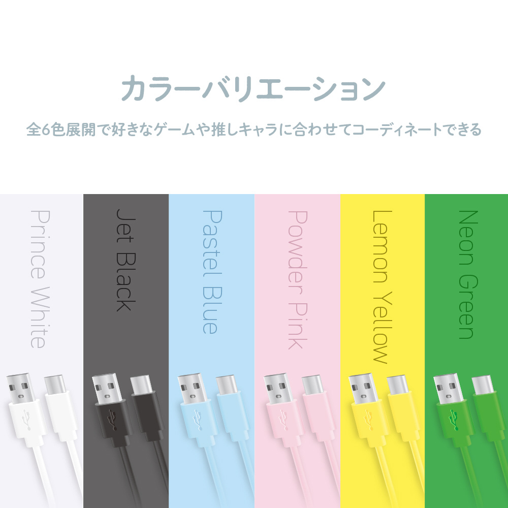 ■ 全6色展開で余裕のケーブル長2mとケーブルバンドが付属!