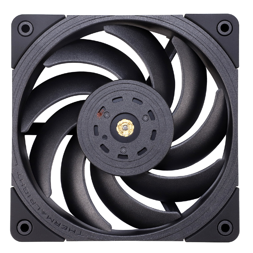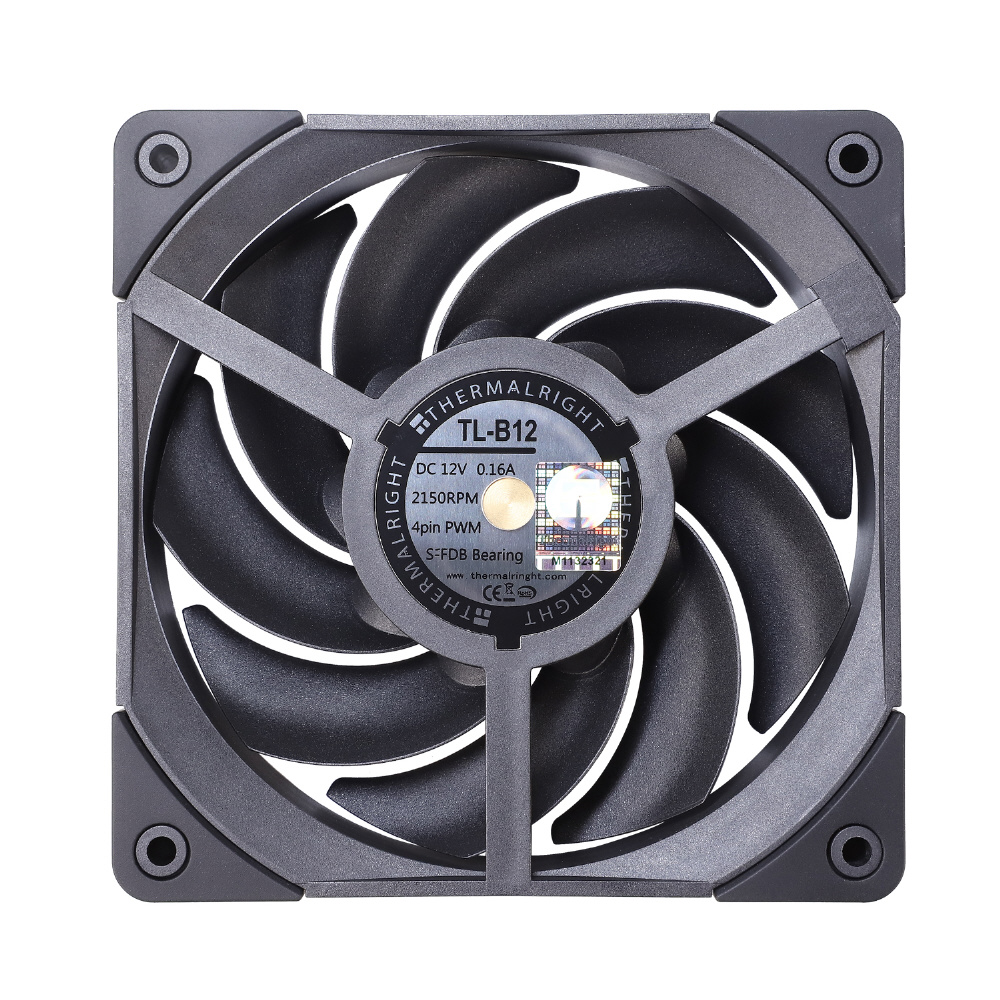 「TL-B12」は、最大風圧2.87mm H2O、最大風量69CFMという高い送風能力を備えた高性能PWMファンです。ベアリングにS-FDB(密閉型流体動圧軸受)を採用しており、高回転時においても安定性と静粛性を損なうことなくファンを回転させます。背面の支持フレームは一般的な十字形ではなく三角対称形になっており、従来より有効面積を23%、ファンの支持強度を20%高めています。