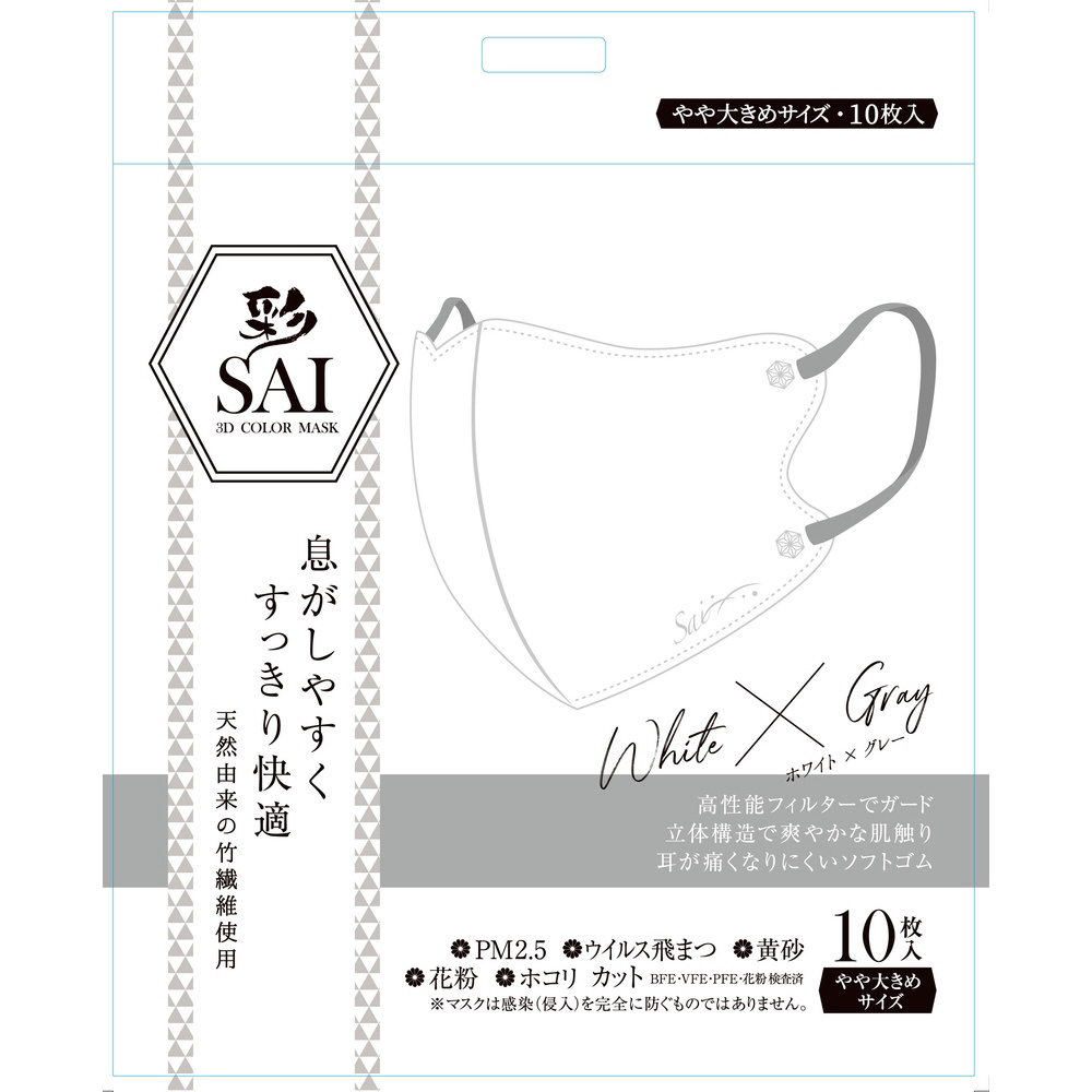 44814彩(SAI)立体マスク 10枚ホワイト&グレー