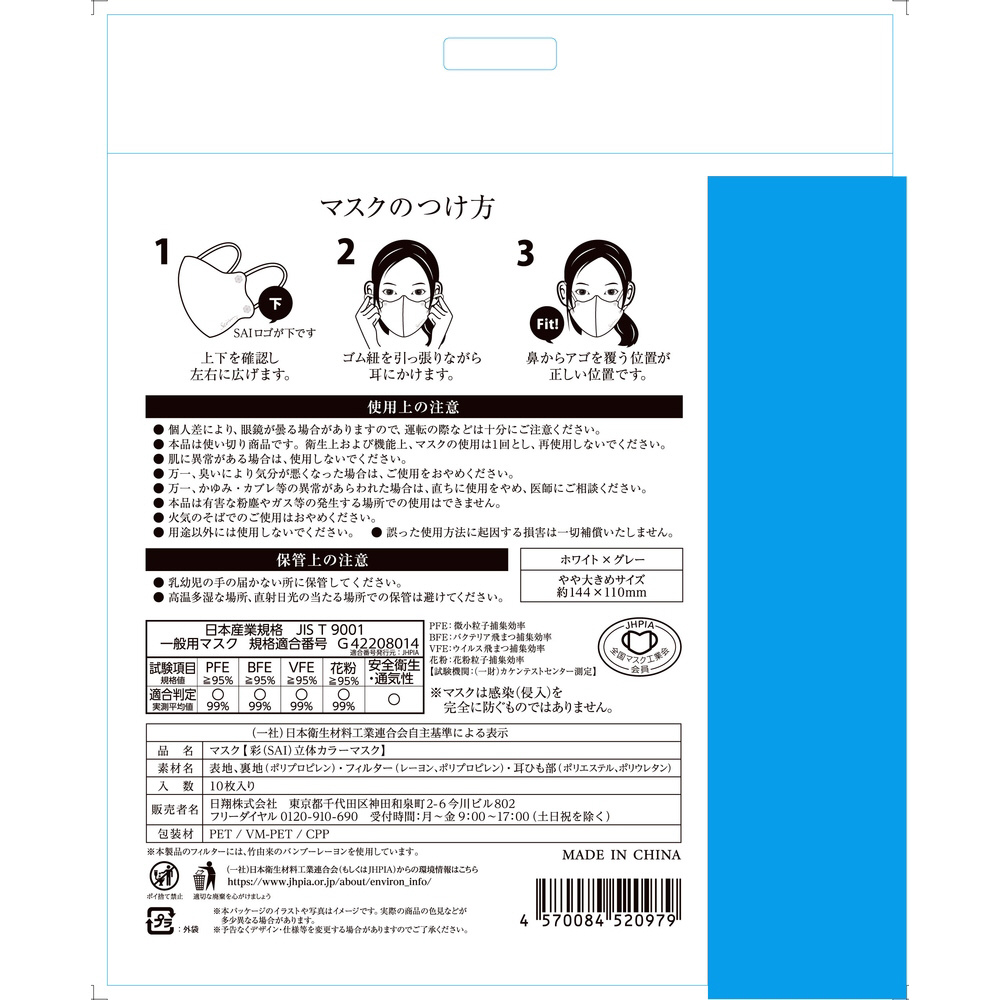 | 商品名 | 彩(SAI)立体マスク やや大きめサイズ 10枚 |