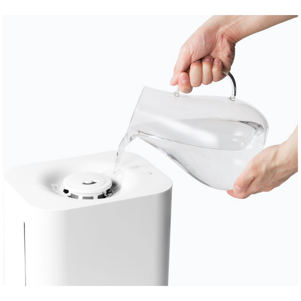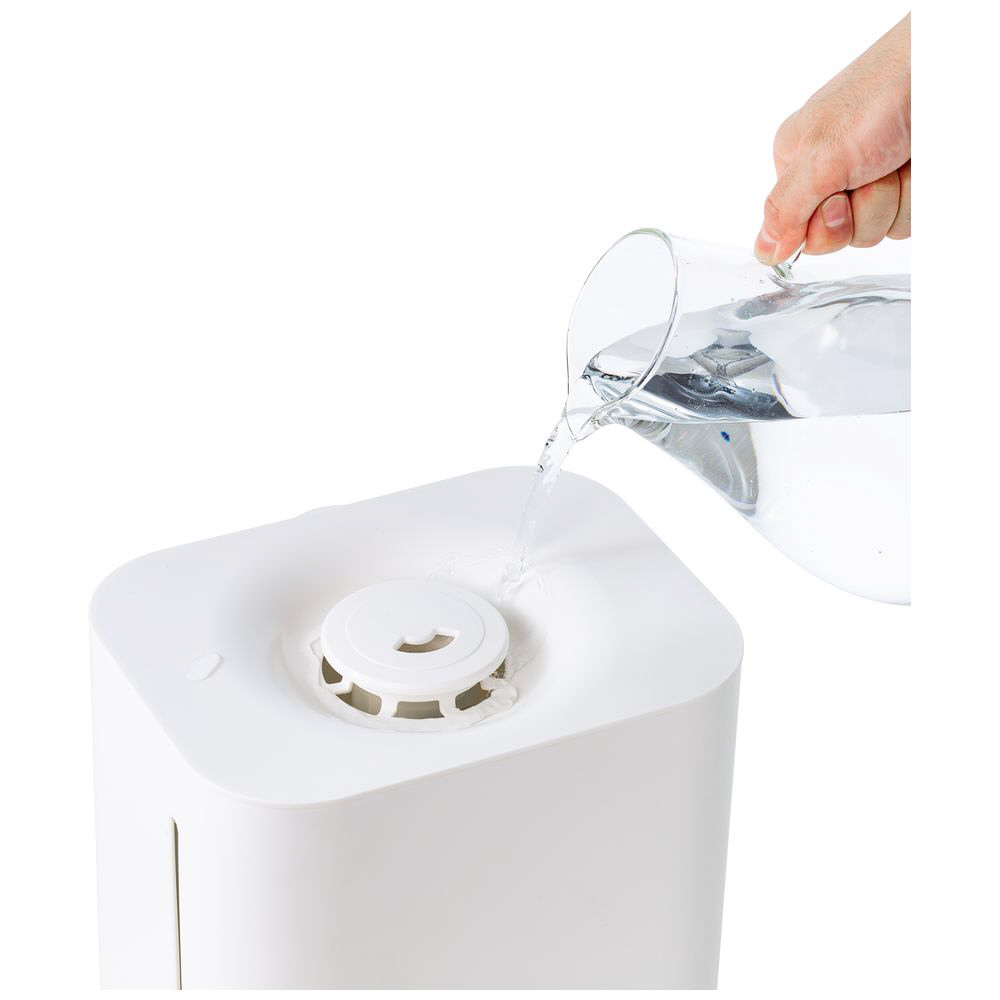 大容量4Lの水タンク、最大20時間使用できる「湿度センサー搭載スチームファン式加湿器」。