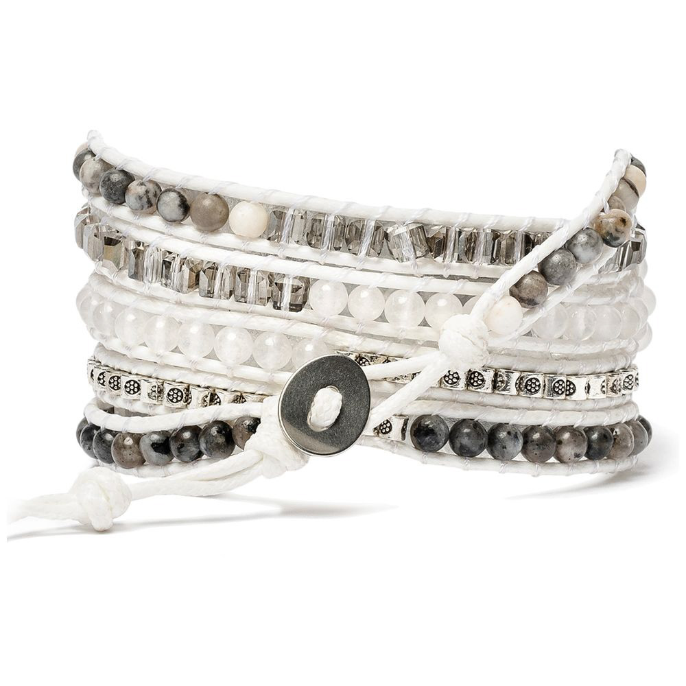 CAPE DIABLO(ケープディアブロ)の「ホワイトラブラドライト」は、純白のラブラドライトを基調として世界中の天然石をハンドメイドでブレスレットにした多重巻きタイプのApple Watchバンドです。