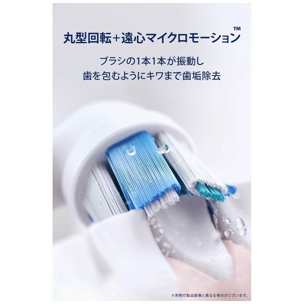 遠心マイクロモーション(ブラシの毛先1本1本のしなり)を引き起こしながら、従来の左右反転運動と連動をして圧倒的な歯垢除去力を実現。