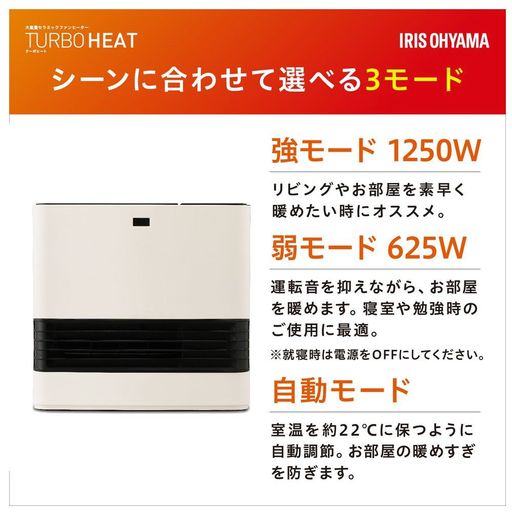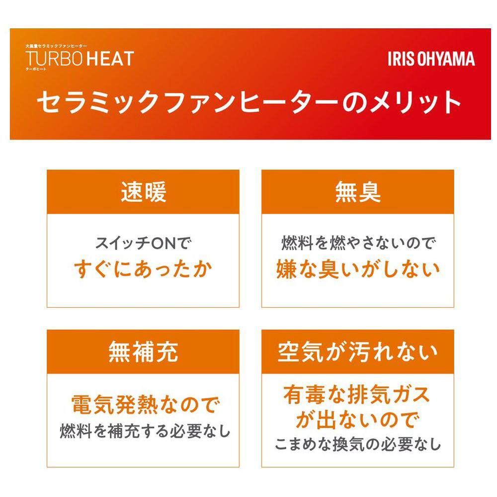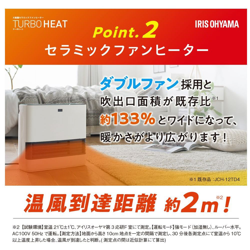 | 仕様3 | [目安表示値の基準値] <1平方メートル当たりの必要W数(木造住宅)> 断熱材なし:244W 断熱材の厚み50mm:140W <1平方メートル当たりの必要W数(コンクリート住宅)> 断熱材なし:174W 断熱材の厚み50mm:93W [安全装置]電流ヒューズ(20A、3.15A)、傾きセンサー(内蔵)、温度ヒューズ(100℃)、温度過昇防止用サーミスタ [別売品]加湿セラミックヒーターフィルター(JKC125D1-F) |