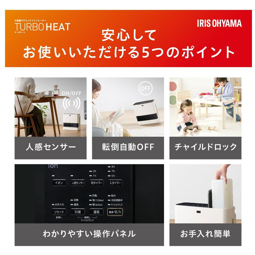 加湿×暖房で1台3役として使える大風量加湿セラミックファンヒーターです。