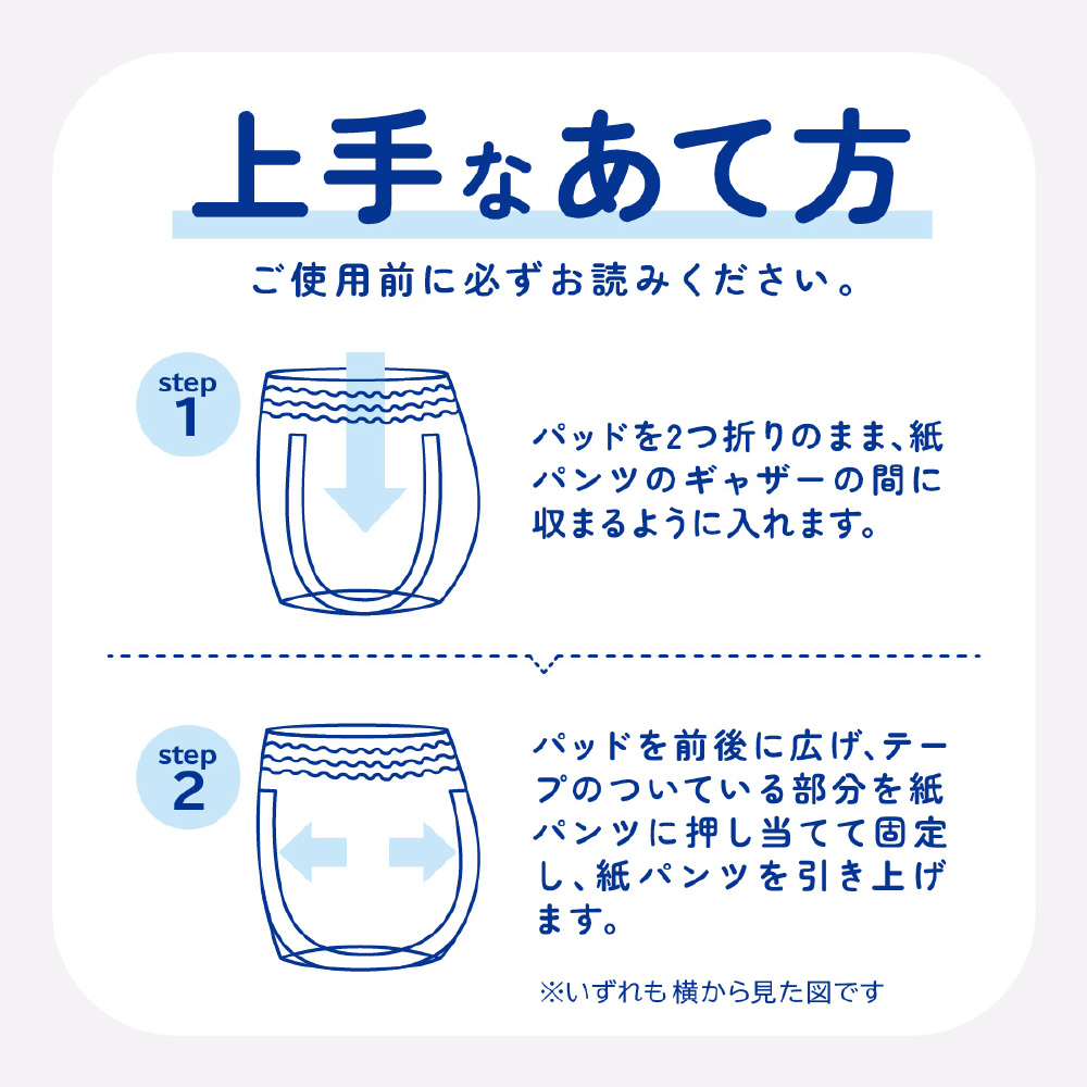●メーカー品最大※の「ズレ止めテープ(ワンタッチ式)」採用で、しっかりくっつきズレにくい