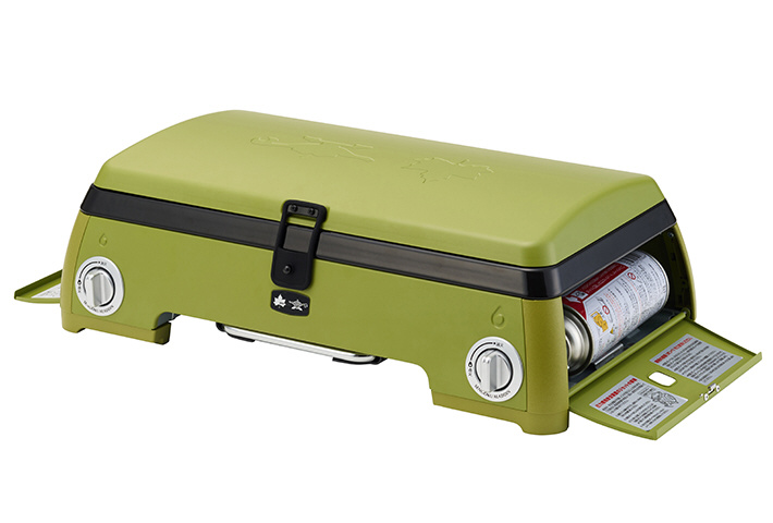 バーナーを本体に潜り込ますように配置した構造と、取り外し可能な風よけのトップカバー採用で、
