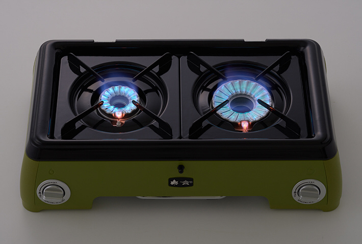 炎径が小さい左側はケトルで湯沸かしなど、調理器具に合わせて使い分けることができます。