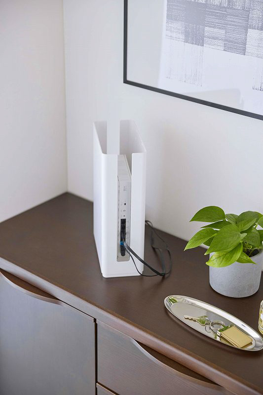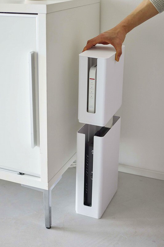 高さのあるモデムやルーターを玄関先やリビングですっきり収納。スタッキング可能な蓋付きのルーター収納ケースロング。高さのあるルーターも収納可能。シンプルでスタイリッシュなデザインだから置く場所を選びません。