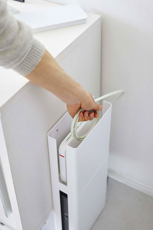 重ねられるスリム蓋付きルーター収納ケースロング スマート ホワイト 05750