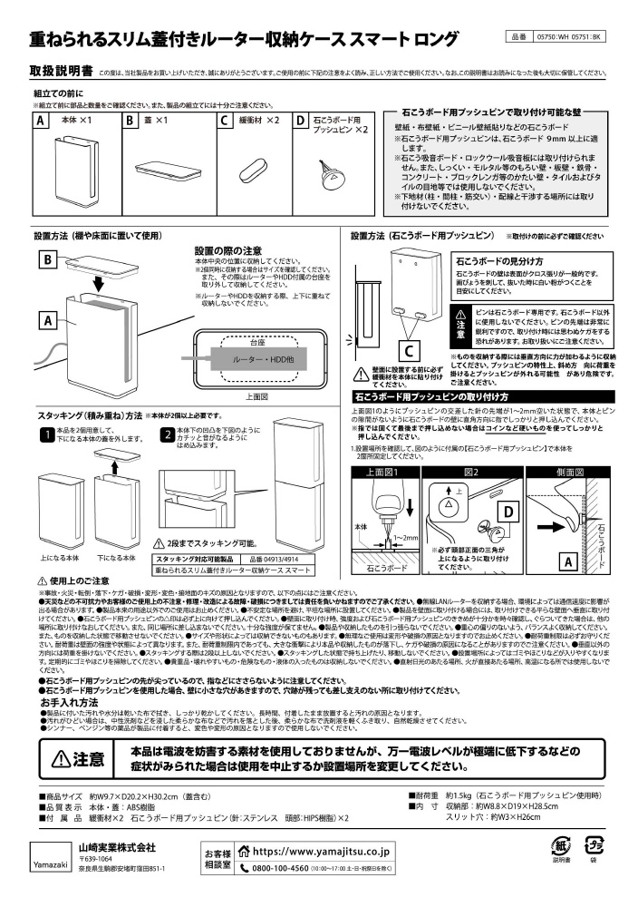 付属品:緩衝材×2、石こうボード用プッシュピン(針=ステンレス、頭部=HIP樹脂×2)