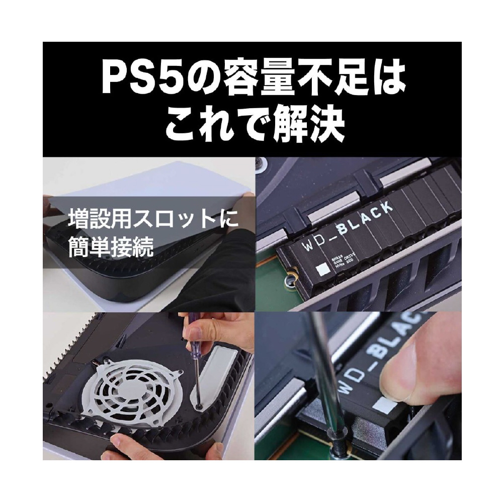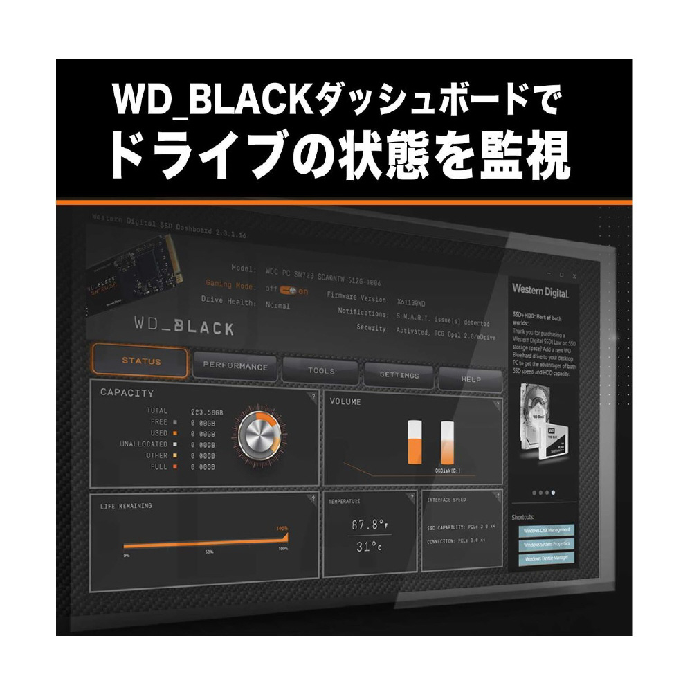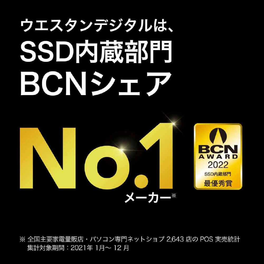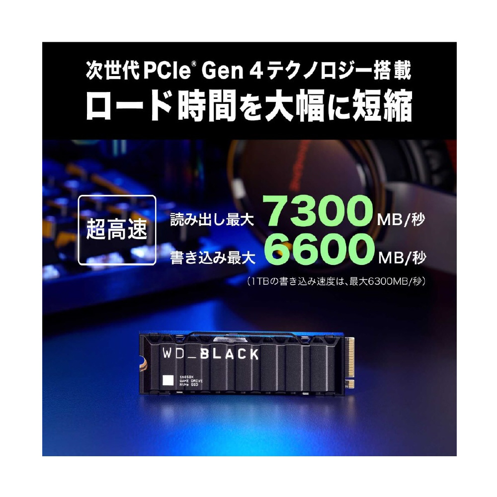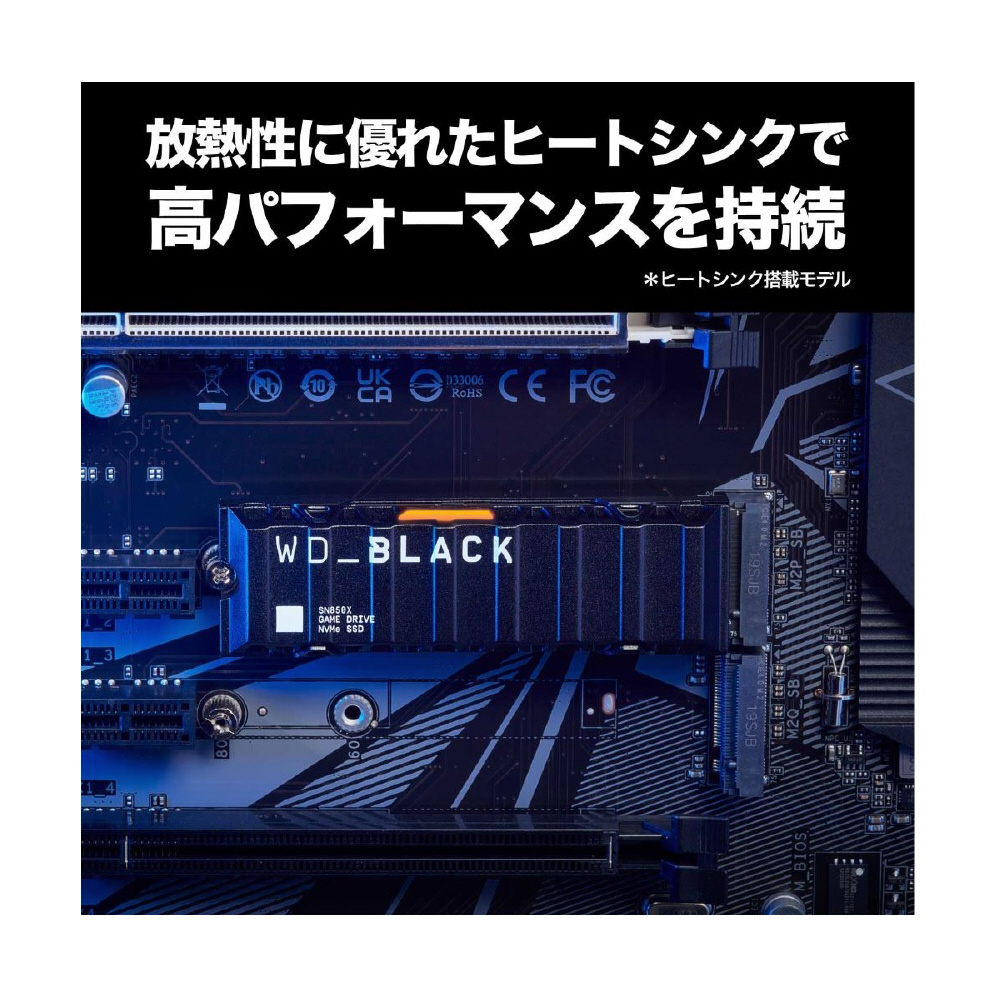 WD_BLACK SN850X NVMe SSDを使用すれば、ゲームプレイを極限まで高速化できます。ロード時間を短縮し、スロットリング、遅延、テクスチャバグを低減し、激しいセッション時でもピークパフォーマンスを維持し、スムーズで高速なゲームエクスペリエンスを実現します。1TBおよび2TB (1) のヒートシンクモデルを利用すると、ピークパフォーマンスを維持し、安定したゲームプレイを楽しめます。WD_BLACK SN850X NVMe SSDではゲームモード2.0 (Windowsのみ) の高度な機能がWD_BLACK Dashboardにより自動的にオンになるため、トップクラスのパフォーマンスを発揮して、安定したゲームプレイ、ストリーミング、録画を維持しゲームプレイを強化します。【互換性】・ M.2 2280フォームファクター対応M.2(Mキー)ポートを装備したコンピュータ・ Windows 11、10、8.1・ PlayStation 5(ヒートシンクモデル)(2) 注意:互換性は各ユーザーのハードウェア構成とオペレーティングシステムによって異なる場合があります。