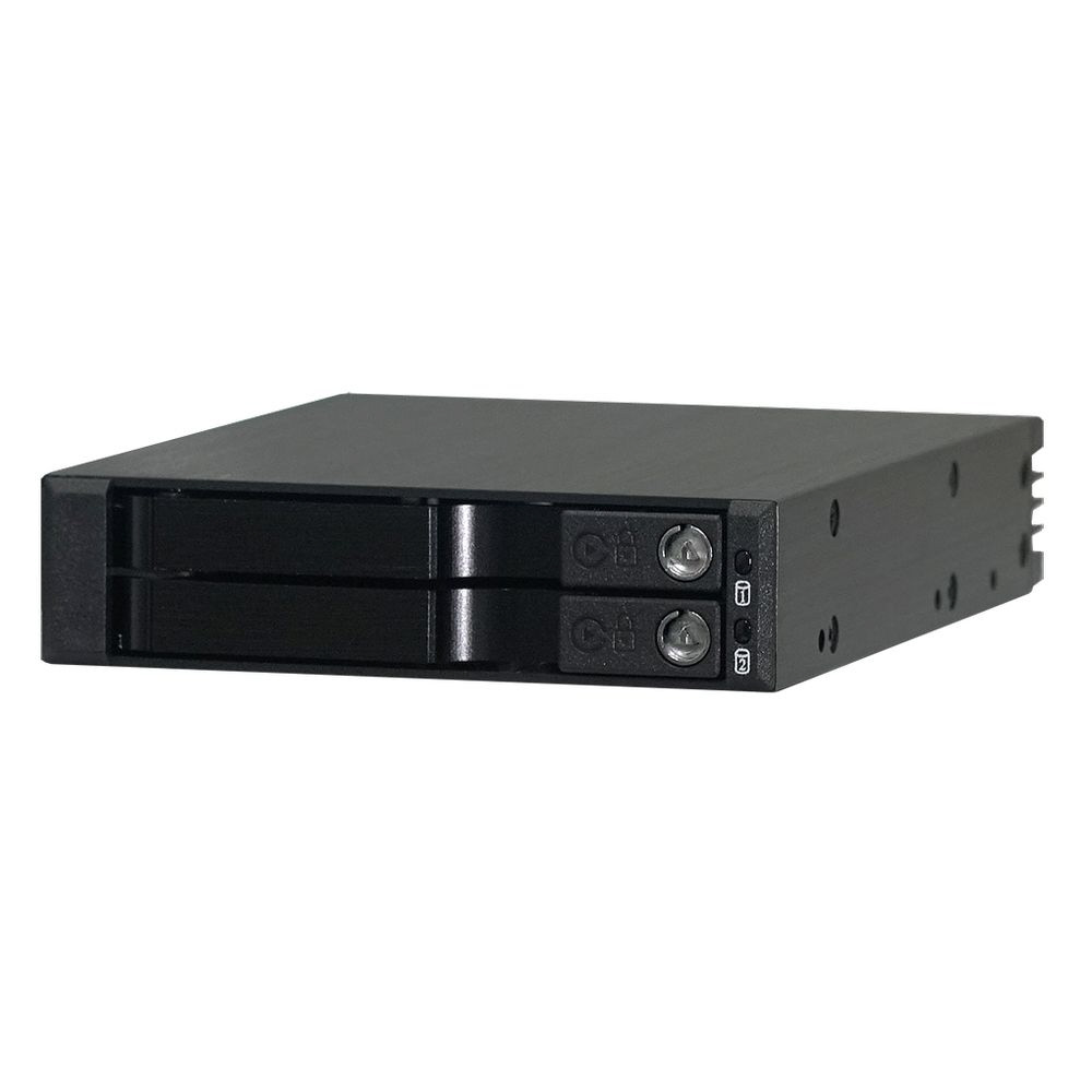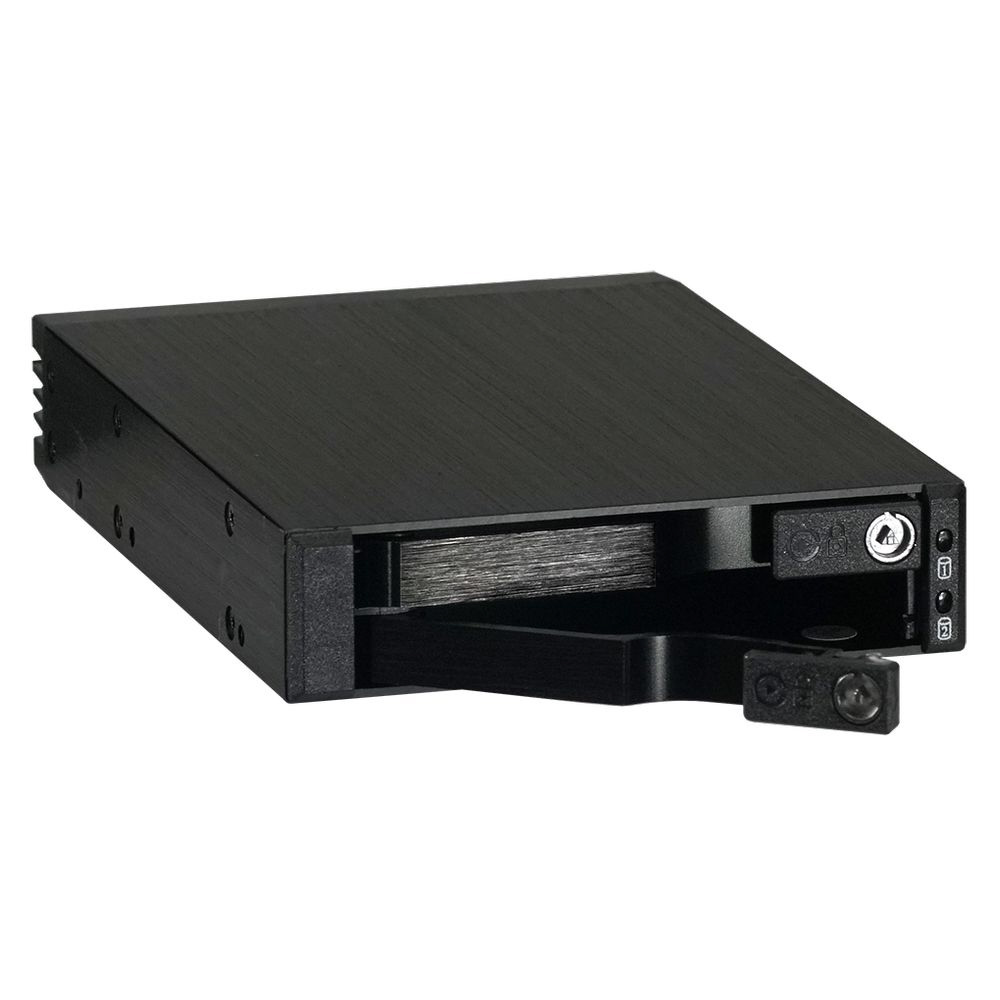 本製品は、3.5インチベイ用のリムーバブルケースとしては、トレイを使わずに2.5インチを搭載でき、ロックスイッチとレバーの操作でそのままドライブを取り外せる製品です。