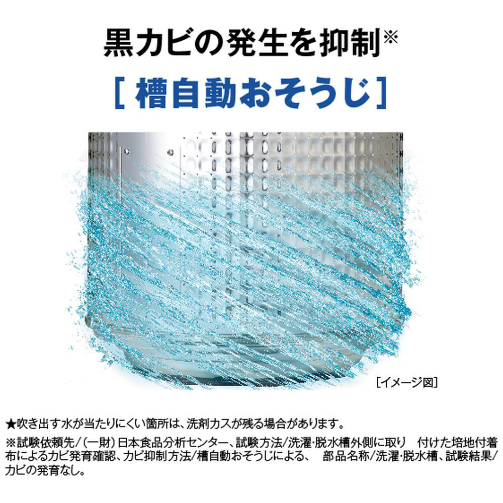 脱水時に吹き出される水によって洗濯槽の裏側に付着している洗剤カス等を洗い流すことにより、黒カビを抑えます。※