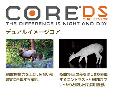 ・デュアルイメージコア:昼間は色合いを忠実に解像力高く、夜間は白黒濃淡をはっきり、鮮明に撮影する新機能。