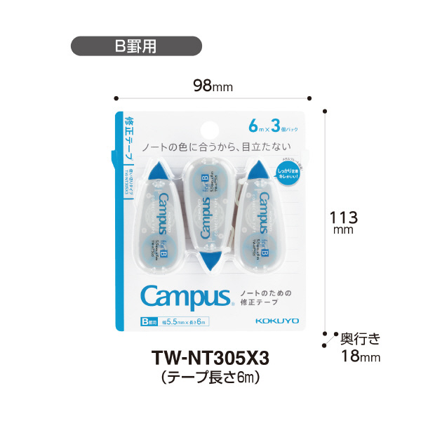 | 商品名 | 修正テープB罫6m 3P Campus(キャンパス) TW-NT305X3 |