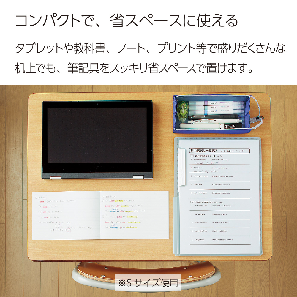 ●省スペース/タブレットや教科書、ノート、プリント等が盛りだくさんな机の上でも、筆記具がすっきり省スペースで置けます。