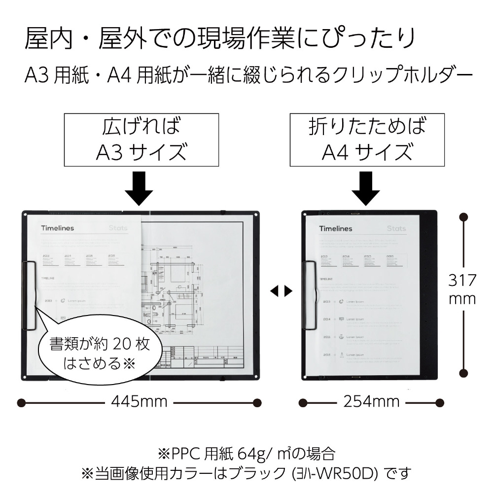 A3とA4を選んで使えるクリップボード ヨハ-WR50D ブラック