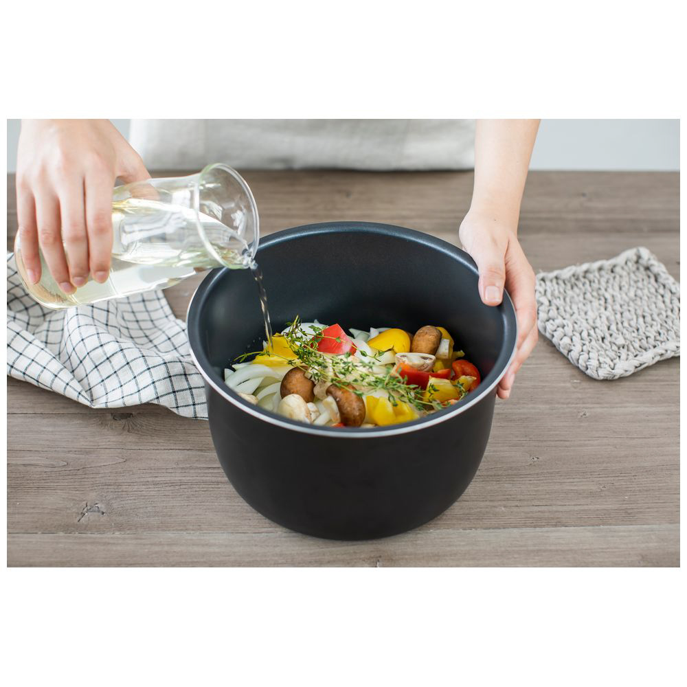 圧力調理や無水調理、蒸し調理、炊飯、スロー調理、温めなおしといった機能に加え、加圧せず低温でお好みの時間(最大24時間)調理を行う「低温調理」、内なべで下ごしらえができる「炒め」、発酵のプロ・マルコメ株式会社監修の「発酵」、温度をお好みで設定可能な「温度調理」が可能。さらに本モデルからは、「低温&圧力調理」と、糖質オフでもおいしさを実現した「糖質オフ炊飯」が新たに加わり1台12役に。幅広い調理方法で、さまざまな料理に活躍します。