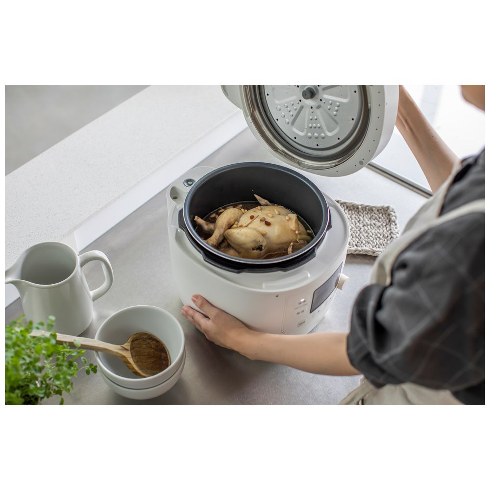 5Lの大容量サイズで、最大6人分の料理を一度に作ることができるため、大人数のご家庭にはもちろん、作り置きにも便利。丸鶏を使ったサムゲタンやローストチキンなど、食材をまるごと使った料理にも対応可能で、さらに料理の幅が広がります。