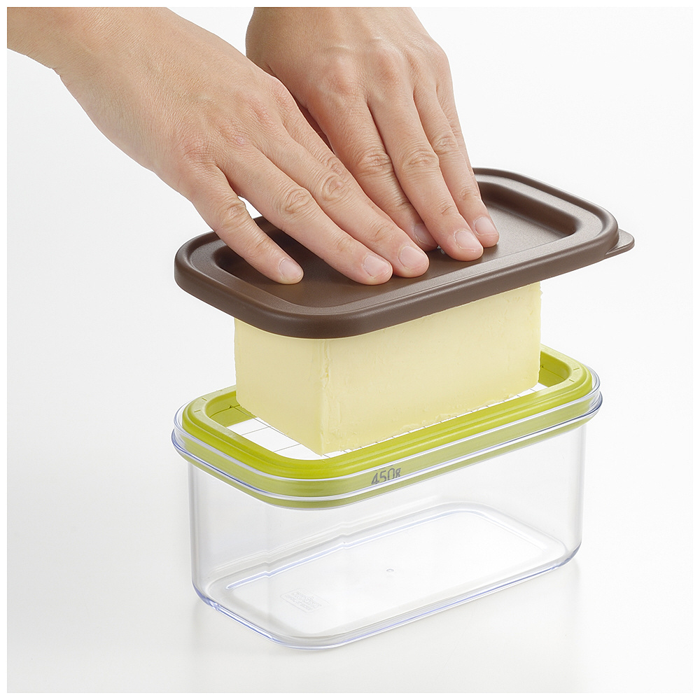 カットしたバターは密閉蓋で保存できるので、冷蔵庫での保管も安心です。