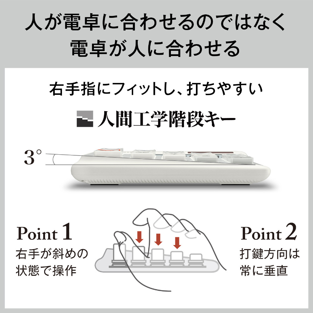 人が電卓に合わせるのではなく、電卓が人に合わせる「人間工学階段キー」