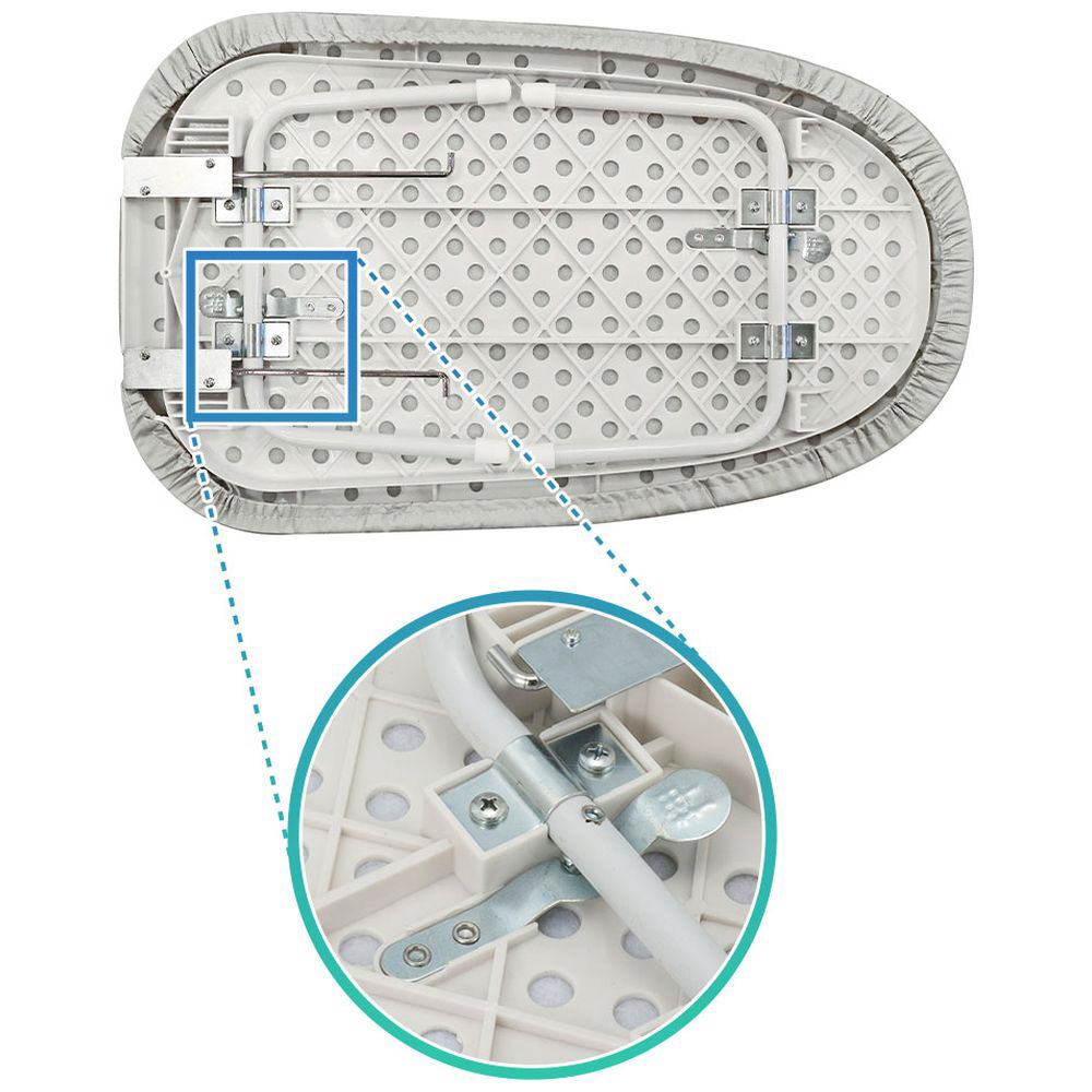 ※ アイロン台の裏面の穴から抜けたスチームでやけどするおそれがあり危険なため、アイロン台の下に足などを入れて使用しないこと。