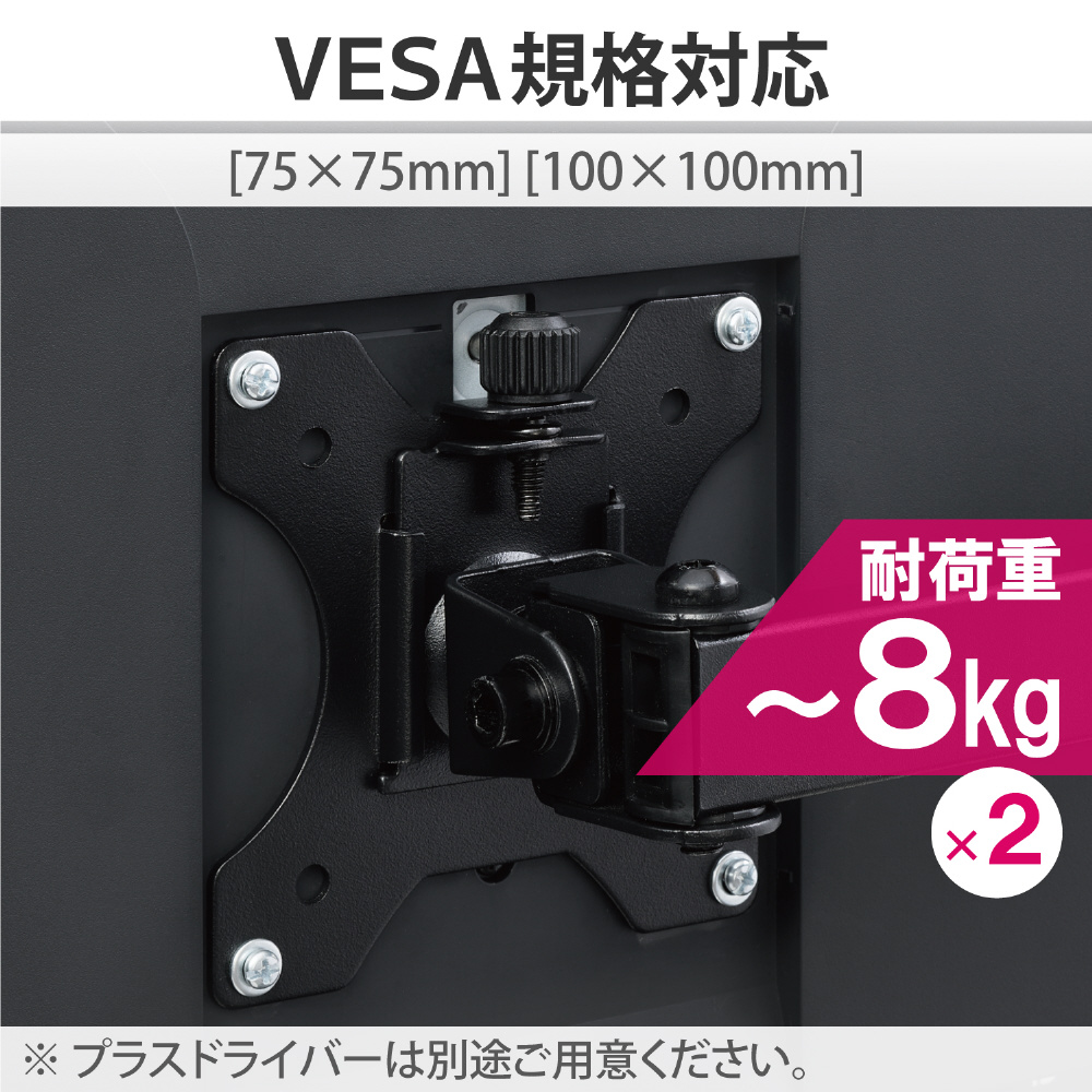 モニターアーム [2画面 /13〜32インチ] ダブルアーム/ロング ブラック DPA-DL03BK 【864】