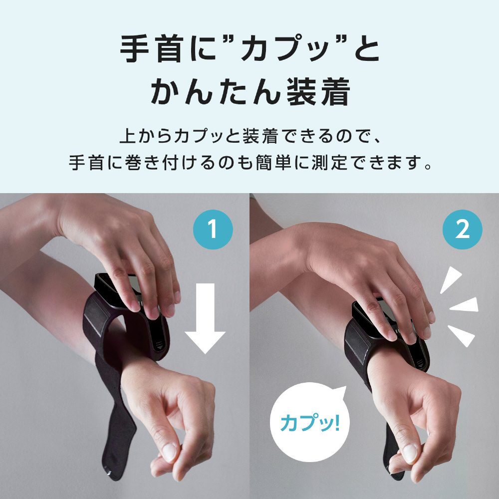 新形状のU字型カフで簡単装着。測定をする本人でも測定をしてあげる人でも簡単に装着できます。