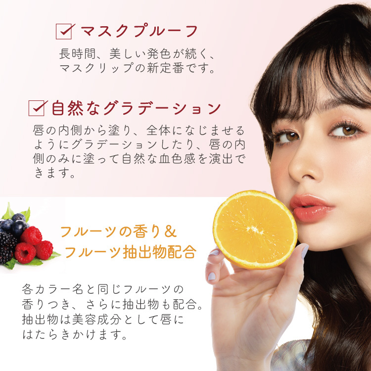 ◆マスクプルーフ仕様で、長時間、美しい発色が続きます。